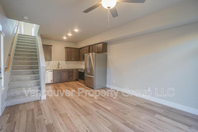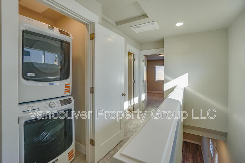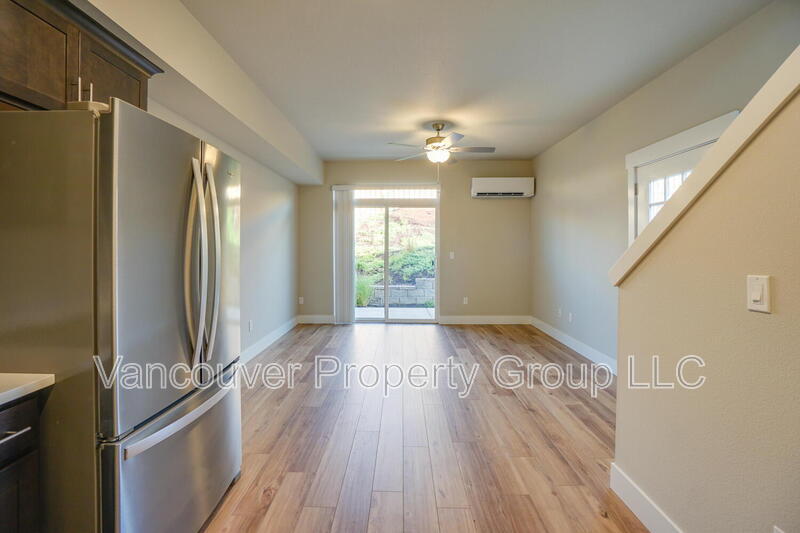 Welcome to this beautifully designed 2-bedroom, 1-bath townhome in La Center, WA with modern comfort. The open-concept main floor features a bright living area and a sleek kitchen with stainless steel appliances, granite countertops, and ample storage. The dining area opens to a cozy porch and a fully fenced backyard—perfect for relaxing and entertaining. Upstairs, you’ll find two comfortable bedrooms, a full bathroom, and a convenient stackable washer and dryer. The fenced yard backs onto peaceful green space, creating a private, serene setting. Water & sewer utilities included in rent! Schedule a showing! Note: This home has an attached 4-bedroom, 2.5-bath unit that is rented separately. Inquire if interested in both. No Smoking. Pet Restrictions: 1 large dog / or 1 cat / or 2 small dogs Application Terms & Conditions: No evictions. Income must be more than 2.5x Rent. 650+ credit score. 1 year minimum lease.