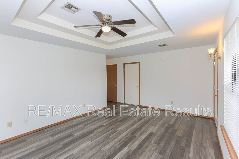 Check out this inviting 2-bedroom duplex located near paved walking and biking trails! This low-maintenance home features no carpet throughout and a bright, spacious living room filled with natural light from multiple windows. The primary bedroom includes a walk-in closet and a private full bath for added comfort. Enjoy an eat-in kitchen with easy access to the outdoorsglass doors lead to a covered back patio, perfect for relaxing. The open backyard backs up to a soccer field, offering extra space and a great view. Move-in ready and waiting for you!