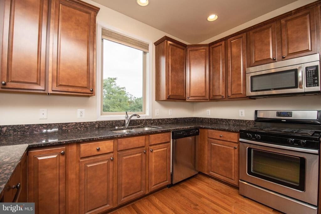 Looking for a great home to start your New Year, then come see this 4 level District model with so much to offer! Entry level den/study, plus bedroom with with full bath. Walk out to one of the decks overlooking treed area. Walk up the curved staircase to the formal living room and dining room featuring hardwood floors. Step into the kitchen with granite countertops, stainless steel appliances large pantry and room for a nice size table, walk out to the second deck. Powder room on this level as well. Upper level owners retreat with tray ceiling, walk in closet, bath with large shower, double bowl vanity and private water closet. Two more bedrooms and the laundry room are found on this level. Basement features spacious rec room, large storage area and walk out to patio. Two car garage plus extra parking across from your next home. No pets and no smokers please. Online application.