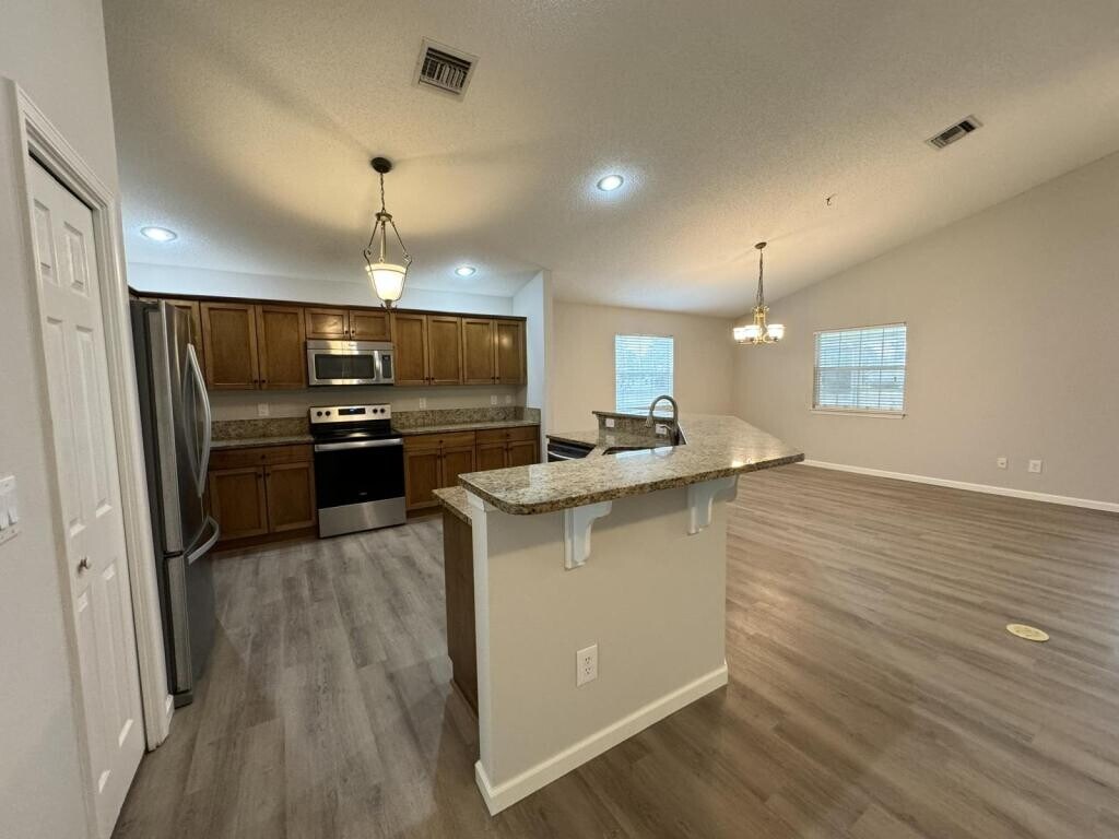 LOCATION! LOCATION! Palmetto Trace - one of the most sought after communities on the beach? Why? Easy walk or golf cart ride to the beach, the amphitheater, shopping, restaurants, the movies, the Aquatic Center and Frank Brown Park. Home offers tenants over 1900 sq. ft. of living space, 4 bedrooms, 2 baths, an open floor plan along with just being updated. Home sits on a quiet cul-de-sac and is directly on the pond, the perfect Palmetto location. Two community pool and a clubhouse! Home is pet friendly with non-refundable pet fee if approved. Don't wait on this one!