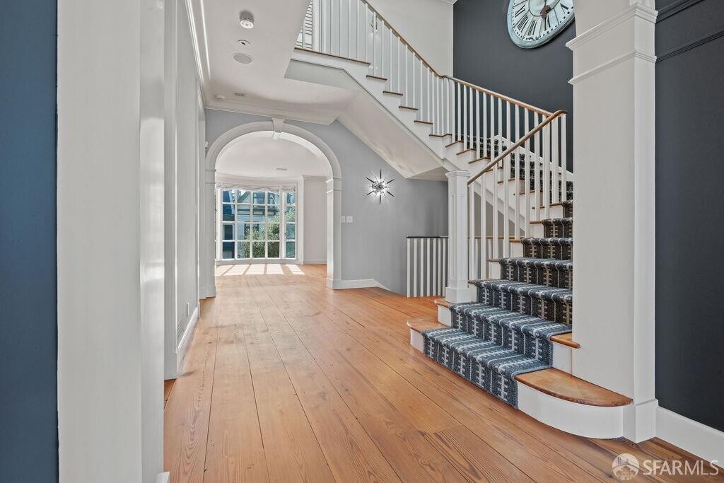 This architecturally significant Sea Cliff residence, designed by Butler Armsden and custom built in 2001, offers a rare combination of pedigree, natural light and contemporary living in one of San Francisco's most coveted neighborhoods. Encompassing approximately 3,510 square feet across three elevator-connected levels, the home has four bedrooms, three and a half baths and a two car side-by-side garage with interior access. Inside the entry, a grand foyer with sightlines to the 3rd floor skylight sets the tone on the main level. This level provides seamless access throughout the living, dining, kitchen and wet bar. Upstairs, the primary en-suite bedroom is complete with its own fireplace, a luxurious spa-style bath and a walk-in closet. Two additional bedrooms with Golden Gate views and a bath are thoughtfully positioned to maximize privacy, natural light and flexibility. Down on the lower level, an additional bedroom offers flexible use of space and it has direct access to a deck and the yard. Outdoor living is equally well-considered with a custom outdoor kitchen, fire pit, sunken hot tub and outdoor shower. This timeless home is a short walk to Baker Beach, Land's End, Burke's, Lincoln Park, China Beach, the Legion of Honor and greater Presidio. Notable features include: Elevator serving all levels Two-car garage Dual laundry stations (first level and top floor) Views of the Bay and Golden Gate Bridge Wine storage - room and refrigerator Integrated sound throughout Wired for media Ample storage on the lower level MLS # 426102361