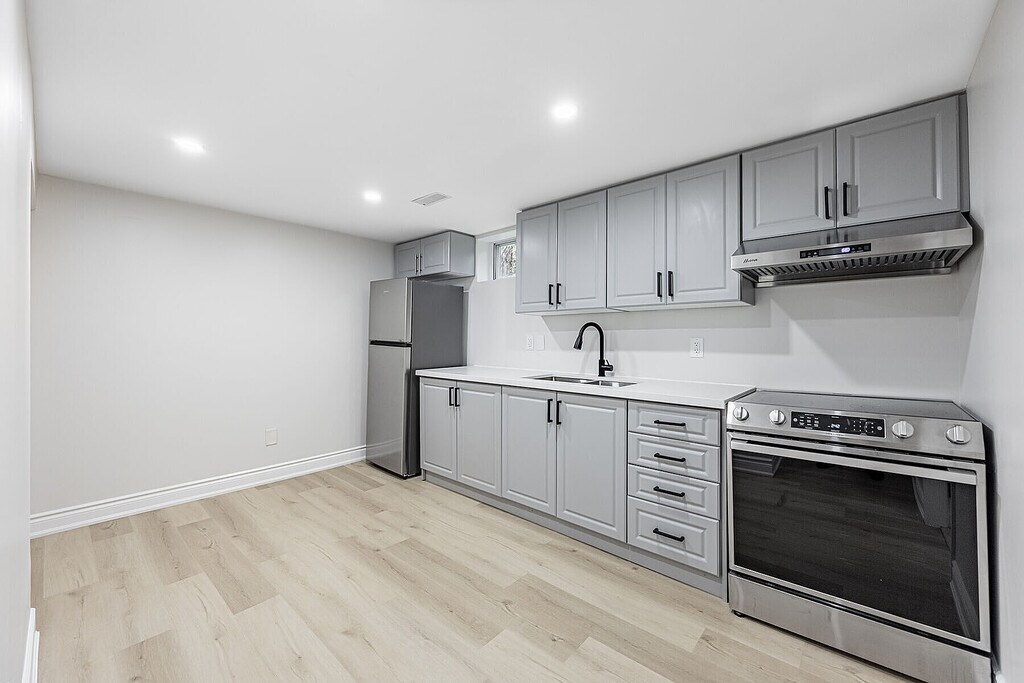 Two bedroom basement apartment finished with a private entrance, spacious living area, brand new kitchen and a bathroom, and all new appliances. Separate laundry. A newly paved driveway with plenty of room for multiple vehicles. Located in a peaceful, family-oriented neighbourhood, this home offers both tranquility and convenience, minutes from the lake, parks, schools, and shopping.