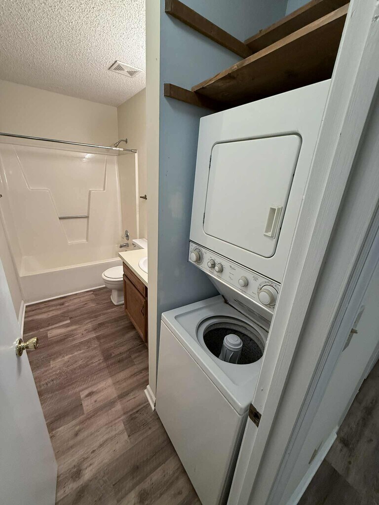 Awesome 2 bedroom, 2-bathroom upstairs condo. Unit has Hardwood flooring (LVP), Totally repainted. W&D Inc. Private balcony w/ attached storage room. Pool access! Renters Insurance Required. Move-in Today! Contact the office before applying, the application fee is non-refundable.