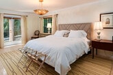 Perfect family home in good condition and located at the beginning of the North End. All rooms have french doors that open to the garden that make the interior feel spacious and light. Other features include: vaulted ceilings in living room, separate dining room, wood paneled library, large kitchen with a family room, pool and lushly landscaped yard.