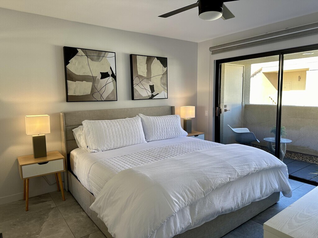 Enjoy this fully remodeled condo in the heart of Plaza Villas. You could not ask for a better location,steps away from downtown Palm Springs. Walk to Agua Caliente Casino or your favorite shops on the main drag. This 1 bedroom 1 bath condo has been meticulously renovated. New kitchen,new bathroom,new furniture. Turnkey furnished,available for monthly or season rental only. The complex boasts: swimming pools and spas as well as tennis courts. Queen size sleeper sofa sleeps 2 adults as well. Current availability mid April 2025 through October 2025. Call listing agent for 2026 Season pricing and availability.