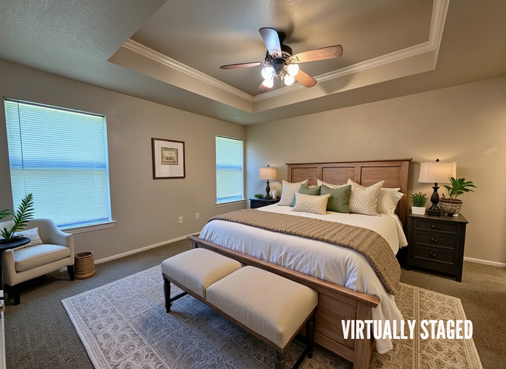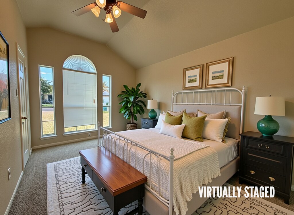 View 360 Virtual Tour: 4 bed 2 bath house with an attached garage. This home features washer and dryer connections, air conditioning, and is all electric with cable ready access. Inside you’ll find ceiling fans and windows that let in plenty of natural light. Enjoy a spacious fenced backyard with a covered patio, perfect for relaxing or entertaining. Pets are welcome, with cats allowed and dogs accepted both large and small. Disclaimer: The furnishings or enhancements shown are AI-generated and intended for inspiration only. They may not reflect the actual scale, condition, or current features of the property.