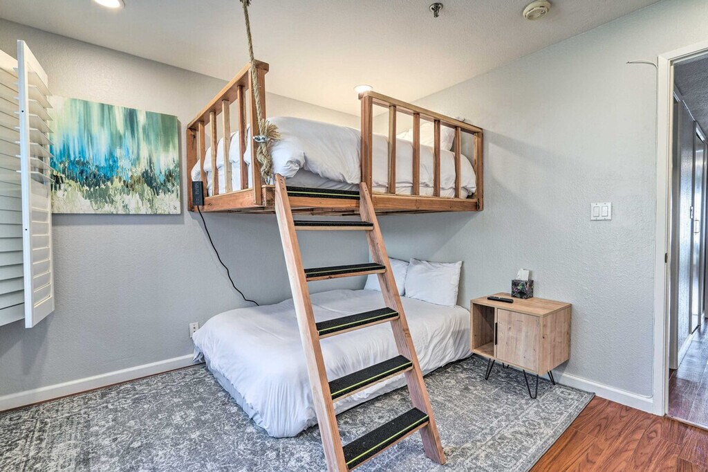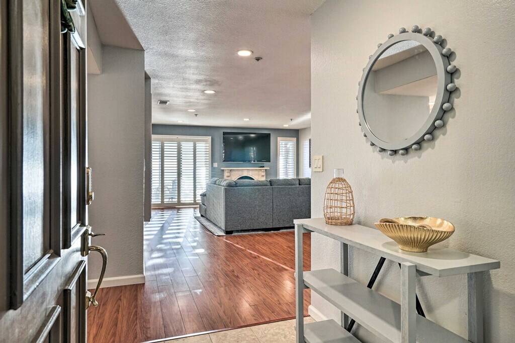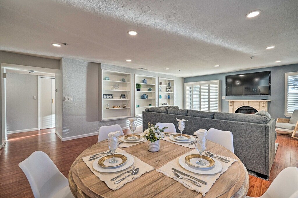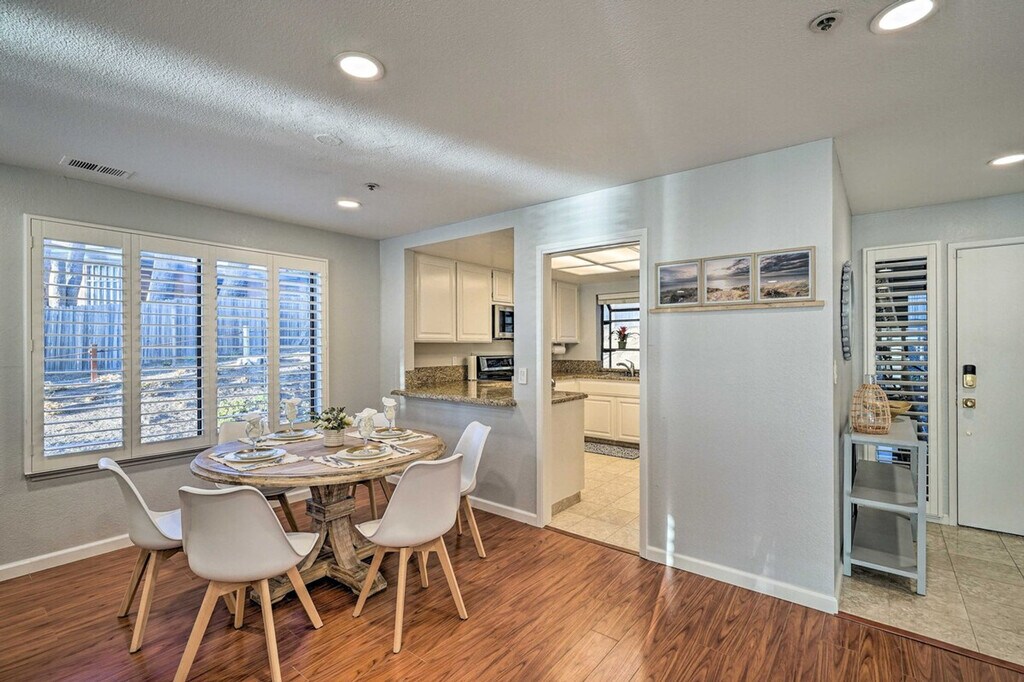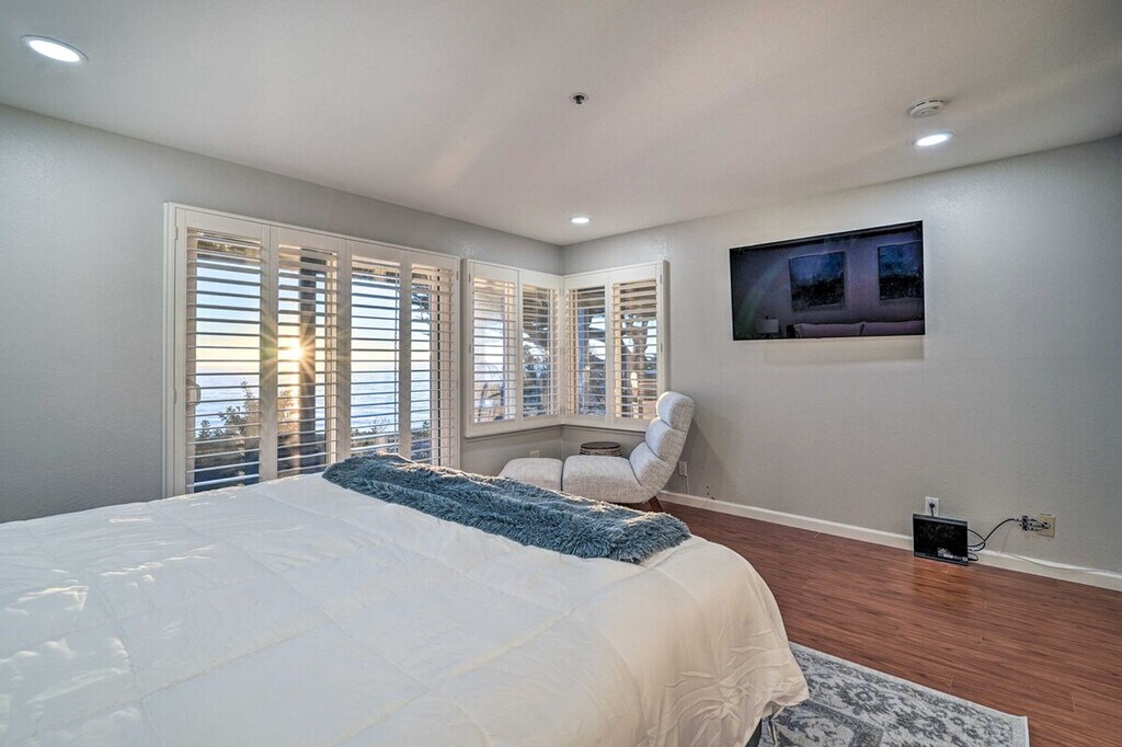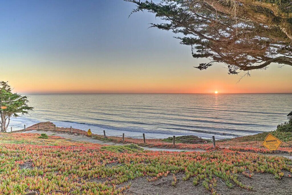 Feel at home in this 2-bedroom, 2-bathroom condo in Pacifica, offering unobstructed ocean views and unparalleled sunsets. This single-story condo is located on the first floor and requires one minor step to enter. The condo features a covered patio with an ocean view, a gas grill, and a seated swing. Inside, you'll find smart TVs, Stearns & Foster pillow top mattresses, a walk-in closet, hardwood floors, and ocean-themed decor. The kitchen is equipped with stainless steel appliances, including a dishwasher, refrigerator, stove/oven, microwave, drip coffee maker, Nespresso machine, dishware and flatware, cooking basics, a toaster, a toaster oven, trash bags and paper towels, complimentary spices, a garbage disposal, and an ice maker. Also included are free high-speed Wi-Fi, a washer/dryer, complimentary toiletries, an iron and board, laundry detergent, electric heating, towels and linens, a hair dryer, hangers, and keyless entry. Academy of Science passes are included (max 5 tickets, 1 for 17 or under). Pets are welcome with a $125 fee. Detached garage parking is available for two vehicles. Stroll down to the beach to watch the surfers, hunt for shells, or bask in the sun. The condo is approximately 13 miles to Union Square in San Francisco and close to Mori Point. Quiet hours are observed from 9:00 PM to 9:00 AM. There are two exterior security cameras: one on the front door facing the entry and one on the back door facing the entry. The cameras record video and sound when activated by motion, recording when they first sense motion and for 30 seconds after the last motion is detected. Smoking, events, parties, and large gatherings are prohibited. There is a motion sensor light outside the window of Bedroom 1 that will occasionally turn on during the night if it is windy. There is a shade to cover the window, but that bedroom may not be suitable for light sleepers. - Wood-Burning Fireplace (Wood Not Provided) | ~13 Mi to Union Square in San Francisco | Crabbing in Area | Academy of Science Passes Included (Max 5 Tickets, 1 for 17 or Under) [SI]