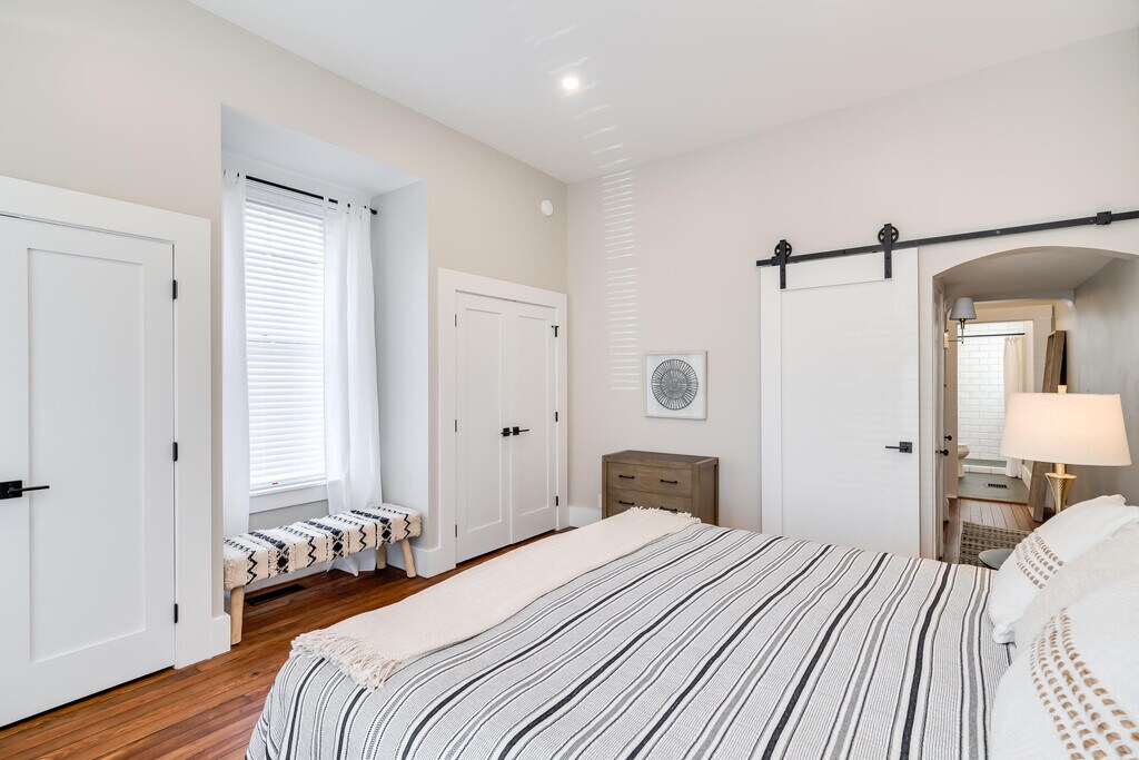 Welcome to your perfect rental in the charming town of Bellevue,KY! This renovated 1888 Italianate offers the entire first floor of about 700 sqft,complete with a private front porch to enjoy the beautiful surroundings. A king-sized bed fits comfortably in the bedroom,along with a dresser,and two nightstands. The bathroom includes a walk-in shower with oversized tile and Bluetooth music to elevate your shower experience. The private front porch offers a great spot to enjoy the outdoors. The yard is completely privacy fenced with gate access front and rear leading to a concrete parking pad. There is also an outdoor grill for your convenience. Indoors,high ceilings add to the spacious feel. The red pine wood floors add to the vintage charm of this beautiful space. The open-plan,modern kitchen includes an island,quartz and butcher block countertops,stainless steel appliances plus a washer and dryer. An additional closet in the hallway is perfect for storing extra belongings. This beautiful apartment is within walking distance of restaurants,bars,and gyms. It has easy access to freeways,Bellevue Beach Park and is only an 8-minute drive to St. Elizabeth Ft. Thomas Hospital. It is also near downtown for easy access to all the attractions. Contact us today about this beautiful rental and start experiencing the best that Bellevue,KY,offers! Owner is a licensed Real Estate Agent.