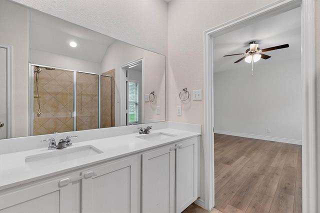 Step into comfort and style in this beautifully upgraded 3-bedroom, 2-bath home nestled in the friendly Woodcreek community within the highly acclaimed Rockwall ISD. Priced under $400K, this gem offers incredible value and thoughtful upgrades throughout! You’ll love the open-concept layout, upgraded flooring throughout, and natural light pouring in through the windows (blinds already installed!). The kitchen and living spaces flow perfectly for entertaining or cozy nights at home.Enjoy outdoor living with an extended concrete patio, upgraded exterior lighting, and gorgeous stone flower beds with mature landscaping and a beautiful upgraded tree. The extended driveway and full gutters are just the icing on the cake. Retreat to a spacious primary suite with a double-hung custom closet, extra shelving, and a spa-inspired shower with upgraded fixtures.Every detail ha s been taken care of—just bring your things and move right in. Don’t miss this