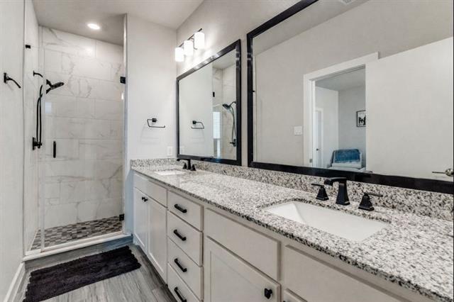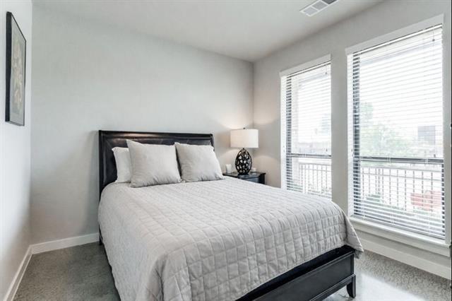 Experience modern North Oak Cliff living in this phenomenal unit adorned with upgrades! Tucked away in one of Dallas' best kept secrets of Stevens Park, 2220 Rook Dr. is a hop to the Oak Cliff Sprouts, a skip to Dallas' Stevens Park Golf Course, and a jump to all of Dallas' finest entertainment. Complete with designer finishes, this 2-bed, 2.5 bath townhome has sweeping unobstructed views of the Dallas Skyline straight off the main living space fit for an entertainer's dream! The main living space has abundant natural light on the 2nd level which also features a large, open living area with vaulted ceilings, dedicated dining and oversized kitchen island seating. The vaulted ceilings, recessed lighting and decorative pendants, highlight the high ceilings and brings a level of warmth not seen in many townhomes. Bedrooms are separated on each level with their own ensuite bathroom. Don't forget the large flex space downstairs that can also serve as a second living area, office, or gym. For your 4-legged friends, there is a small private front yard maintained by the community as well as a community dog park. Fit for any modern lifestyle focused on convenience, don't miss out on this convenient lock-and-leave townhome surrounded by Dallas' best!