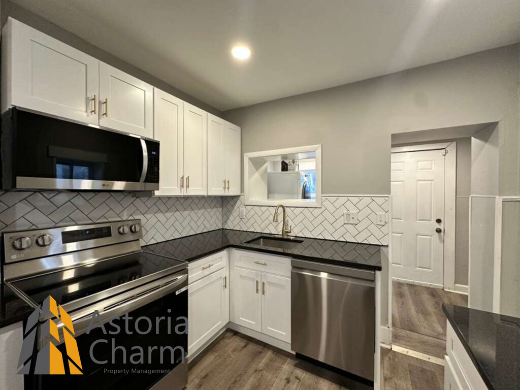 This 2 bedroom home with a den features laminate flooring throughout and beautiful exposed brick on the main level that adds character and warmth. The updated kitchen includes white cabinets, a tile backsplash, and stainless steel appliances such as a refrigerator, electric stove, microwave, and dishwasher. The bathroom has been fully updated with modern tile finishes. The fenced backyard provides a private outdoor space, and the unfinished basement offers plenty of room for storage. Vouchers are accepted, and pets are welcomed after completing our pet screening profile. Move in ready and located in a convenient area close to shopping, dining, and major routes.
