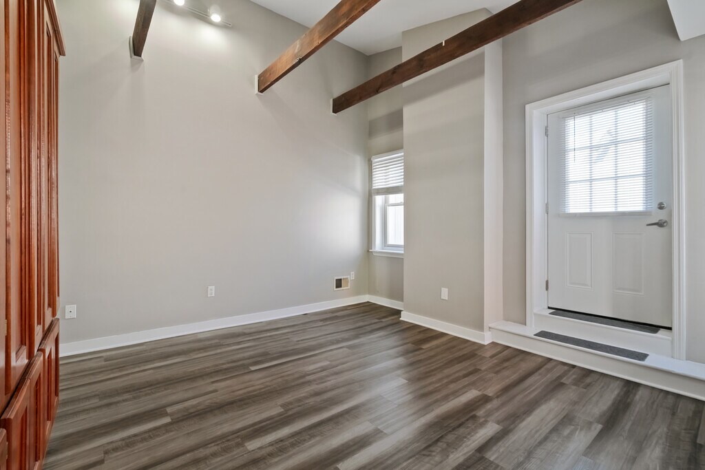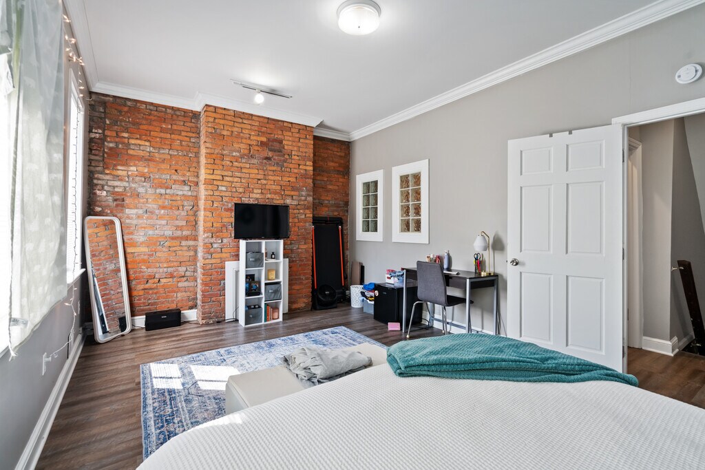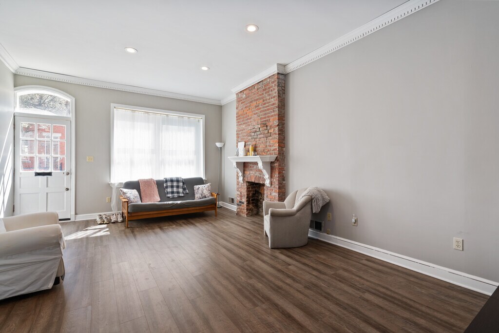 Incredible four bedroom two full bath house with central air conditioning and incredible high end renovated kitchen. Enter the front door to find a huge living room with high ceilings, crown molding, and recessed lighting. Down the hall is a full bath, kitchen , and dining nook. Kitchen has all new quartz countertops and high end stainless steel appliances. Upstairs you will find exposed brick, four bedrooms, another full bath, and washer and dryer which are included in the rent. Off of the rear bedroom is a full roof top deck - great for entertaining! The home is available August 1st! Tenant pays all utilities