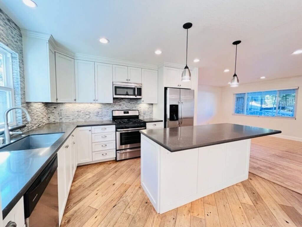 Move-in ready. Charming 3BD/2BA single-story, ranch style, single-family home with approx. 1,258 sqft of living space in Walnut Creek is available NOW! Updated home boasts beautiful, engineered wood floors, modern kitchen and baths, recessed lighting, in-unit laundry with full-sized washer/dryer, central heat and A/C, and two (2) car attached garage. Located on a private cul-de-sac, near the border of Lafayette with easy freeway access to I-680 and Hwy 24, Walnut Creek BART Station and just minutes to downtown Walnut Creek. The inviting front porch entry features an elegant stained-glass door and opens to an open-concept living space. The living room features a fireplace with tile surround hearth. The kitchen features quartz countertops with mosaic glass full backsplash, SS appliance (refrigerator, 4-burner gas range/oven, dishwasher, and microwave), wine fridge, center island with pendant lighting and additional eating/seating area & workspace, single bowl sink with gooseneck pullout faucet, and pantry & ample cabinetry with pullout drawers. The adjoining dining area features an access door to the patio and large back and side yards The primary bedroom features vaulted ceilings, ceiling fan with lighted fixtures, and en suite bathroom. The primary bathroom features walk-in closet, single sink vanity with solid stone countertop, step-in shower with clear glass enclosure and separate water closet. Bedrooms 2 & 3 are of equal sizes and feature standard-sized closets. The hall bath features a single sink vanity, granite countertop and a shower-over-tub combo shower. No smoking. No pets. Current Service Animals specifically trained to aid a person with a disability or Emotional Support Animals are welcome with proper documentation. Gardener included in rent. Tenant pays ALL utilities including Cable or Internet service. Twelve (12) months lease required. For more information and rental qualification requirements, please visit For viewing inquiry, please call/text Teresa (DRE# 01071653) of Premium Properties at . Rental Qualification Requirements: - Tenant(s) must have a minimum credit score of 675. No bankruptcy within the last five years, unlawful detainers, or evictions on record allowed. 2 years minimum rental history & income history required. Combined gross income of all applicants must be at least 3x the monthly rent. - The Tenant must carry renter's insurance & present proof of renter's insurance by the time of move-in. - No Smoking will be allowed in the home. - Gardener included in rent. Tenant pays ALL utilities including Cable or Internet service. - There is a non-refundable $50.00 application processing fee. WE WILL ONLY PROCESS APPLICATIONS SENT VIA OUR OFFICE. Do *NOT* fill out any online applications unless instructed to do so by Premium Properties, even if you are asked to do so within online advertisements. - No pets. Current Service Animals specifically trained to aid a person with a disability or Emotional Support Animals are welcome with proper documentation. - Two (2) car-attached garage. - Monthly Rent $4,350.00 - Security Deposit $5,400.00