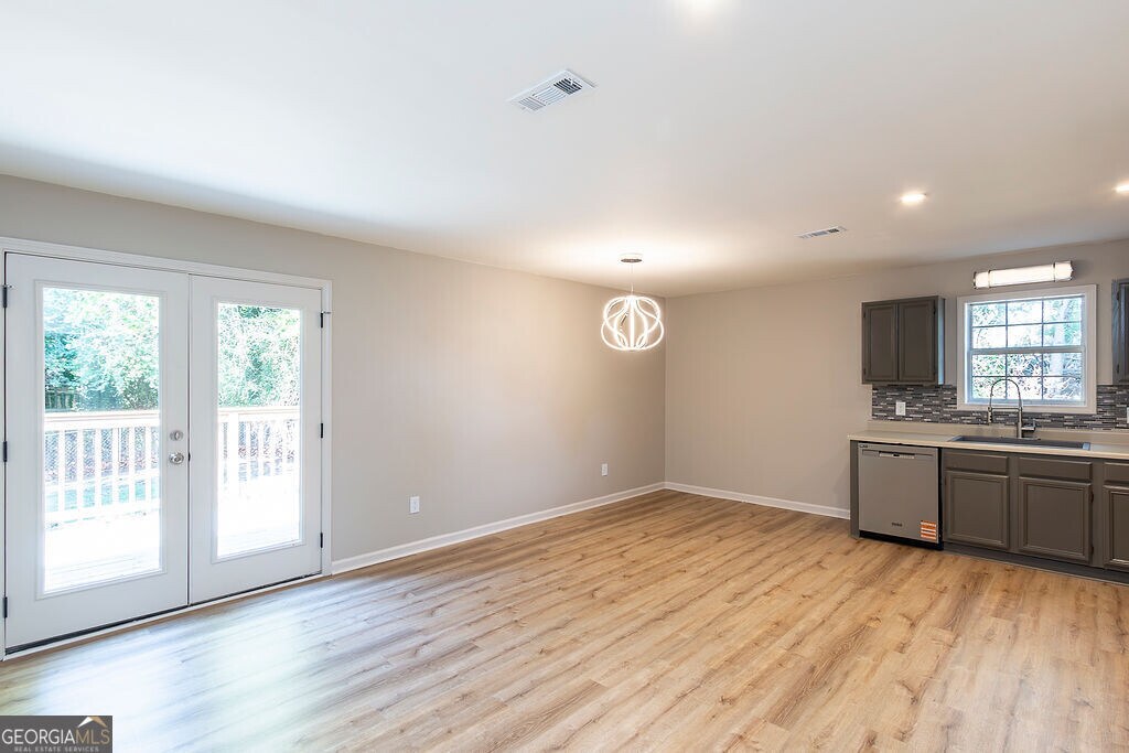 LAKE VIEW Home. This NEWLY RENOVATED 3 bed/2. Home has DESIGNER TILE SHOWER with high tech faucet , DESIGNER light fixtures, new vanities, LARGE GARDEN TUB, new stainless steel appliances, NEW HARDWOOD FLOORS, travertine fireplace, HIGH CATHEDRAL CEILING. Private deck with FENCED IN YARD. Located in a LAKE LANIER community and NEAR WATERS EDGE. 5 MINUTES TO SHOPPING AND GAINESVILLE POPULAR SQUARE-GREAT RESTUARANTS! Two car garage.