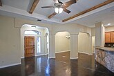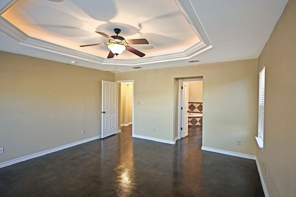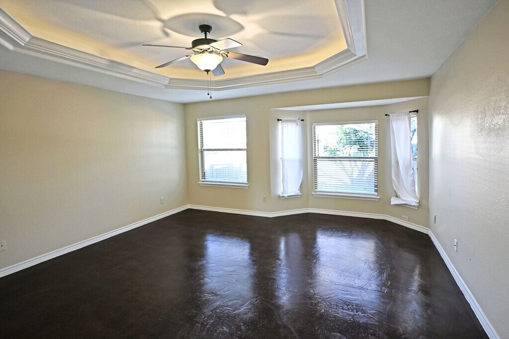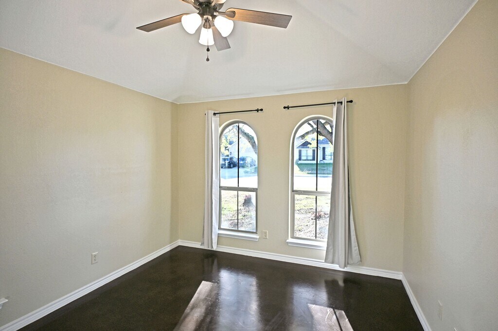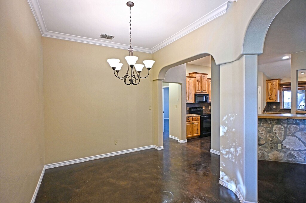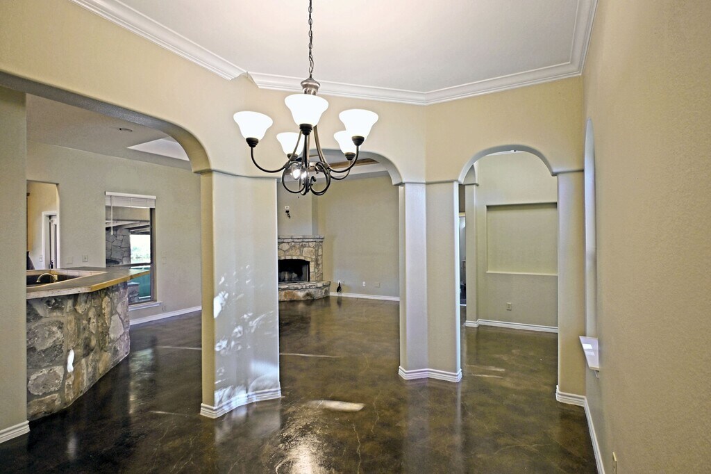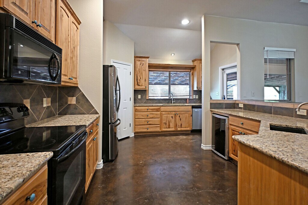 Witness this stylish 3 bed/2 bath stone veneer home with a well shaded front yard that is thoughtfully xeriscaped. Enter into the spacious living room arched entryways and wood-style vinyl flooring that guides you to each room. The island kitchen features dark granite countertops, pantry, and dining area. Check out the primary bedroom with bay windows. Melt your cares away in the primary bathroom suite with garden tub, tiled stand-up shower, and dual sinks. Kick off your shoes and relax underneath the covered porch overlooking the private backyard. ENTERTAINMENT EXTRAORDINAIRE!!! This sprawling 2,100+ sqft beauty is built for comfort and entertainment. The open floor plan and gorgeous stained concrete floors. Converted garage has its own exterior access and is ideal for a home office or game night. The true treasure of this Townview gem is the covered back patio! Outdoor, stone fireplace, grill, and built-in bar are sure to make for a perfect gathering place. All this is located in one of the hottest areas of New Braunfels with NO HOA!