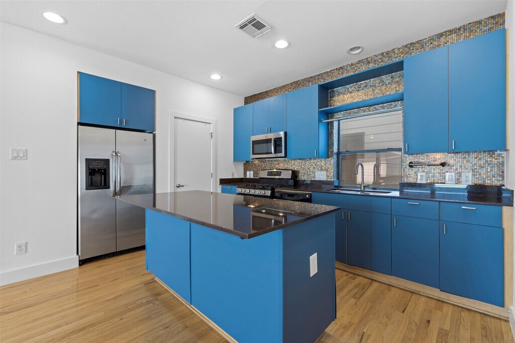 Welcome to your new home at 2224 Bastrop Street! This modern-style 2006-built two-story townhome is just minutes from Downtown,EADO,and Midtown,nestled on the end unit in a quiet gated community. Bathed in natural light,it boasts an open-concept second-floor living space with elevated ceilings,stylish lighting,blonde wood floors,and a seamless transition to the island kitchen with granite countertops,a mosaic tile backsplash,bold blue cabinetry,and all stainless appliances. The second-floor master suite offers a soaking tub,a separate shower,and an impressive walk-in closet. On the first floor,find a utility room behind double doors,a full bathroom,and two secondary bedrooms with a sliding door to the small side yard. Also note the 2-car garage & covered entry in this vacant,move-in ready space that offers the ideal mix of style and simplicity. The well-designed floor plan makes for easy,comfortable living in a fantastic location! MLS# 58676459
