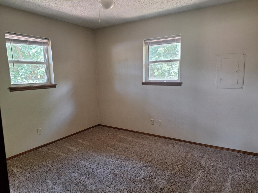 This house has everything you need with a corner lot, fenced yard, 3 bedrooms, 2 full baths, and a 2 car garage. In addition to a 2nd living room, and spacious closets, it also has a dishwasher, washer/dryer, and underground storm cellar. Hard flooring is throughout the main living space with carpet in the bedrooms. Dogs may be allowed on a case by case basis with a signed pet agreement. Utilities are not included in the rent and the deposit is equal to one month's rent and due at lease signing. To fill out an application, please go to or text
