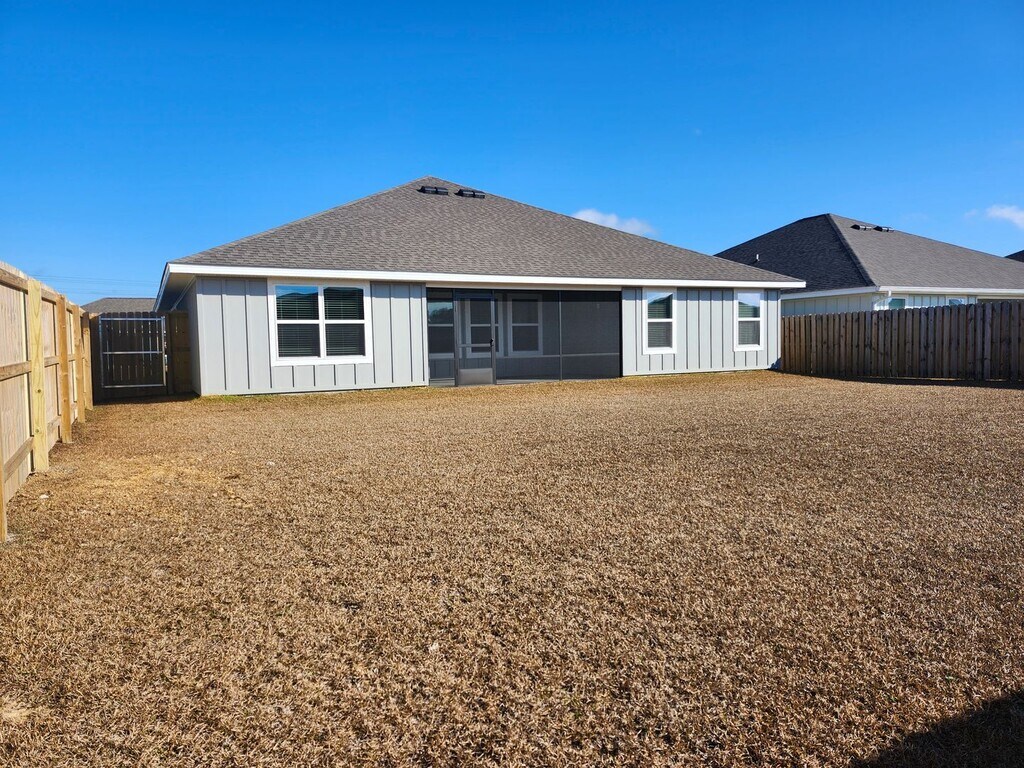 Must see to appreciate this beautiful brand new home in Robert's Cove Subdivision! This home has an open concept with 4 bedrooms, 2 full baths and a 2 car garage. The open living area includes a kitchen, living room and dining area. Granite counter tops, stainless steel appliances, Vinyl Plank flooring throughout, large walk in closet in the master with double vanity, step in shower and garden tub. Comes with a wide covered and screened in patio for entertaining and privacy fenced back yard. Robert's Cove is set in a prime location where you are a short drive from entertainment, restaurants, and Alabama's beautiful beaches! All data including sq. ft. and measurements deemed reliable but not guaranteed and should be verified by tenant and tenant's agent. Photos reflect the condition of the property at the time of listing. Call Sun Realty and Property Management LLC at for more information or to schedule a showing.