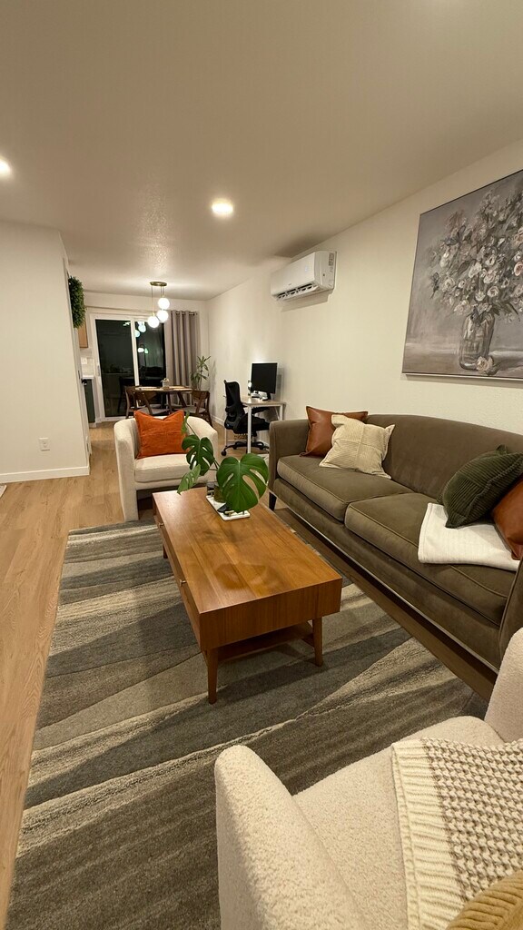Immerse yourself in this spa-inspired home-away-from-home! This half of the duplex received a full renovation, with no surface left untouched! You'll be the first to enjoy the remodel!The organic modern spa aesthetic intends to set the mood for relaxation after a long day at work. Kick off your shoes, wrap yourself in a super plush Hotelier cotton robe and prepare for a soak in the tub to melt away your stress. Rejuvenate yourself with deep sleep in our queen bedrooms that have brand new 14" hybrid mattresses with extra hip and lumbar support. The luxurious cotton linens will give you a warm embrace as you enjoy the warm glow of the pendant lights and gentle breeze from the silent ceiling fan. Each room comes with ample storage and blackout curtains. The primary bedroom includes a 43" smart TV to enjoy your favorite streaming shows.The kitchen comes fully stocked with cookware and utensils to enjoy your favorite home cooked meal or to experience delicious local take-out. Our quartz countertops are easy to clean, along with the glass top range to provide extra surface space. All new, full sized stainless steel kitchen appliances are included. Soft closing cabinets, a large pantry, a multifunctional sink faucet, and natural light flooding into the kitchen, make for an enjoyable daily experience.The main living area includes a dining table that seats 4, a dedicated work area with a widescreen monitor, and a naturally lit living room with a 55" smart TV and soundbar with subwoofer to enjoy your favorite streaming platforms. The in-unit washer and dryer are tucked out of sight and have storage space for laundry and cleaning supplies. The large backyard is fully fenced and is a fantastic place for you to engage with your dog or catch some fresh air. There is a storage unit and picnic table available for use.This home is blocks away from Downtown Forest Grove! You can enjoy the farmer's market, restaurants, breweries, coffee shops, local library and more within a 6 minute walk. The home is located on a quiet street with sidewalks and street lights.