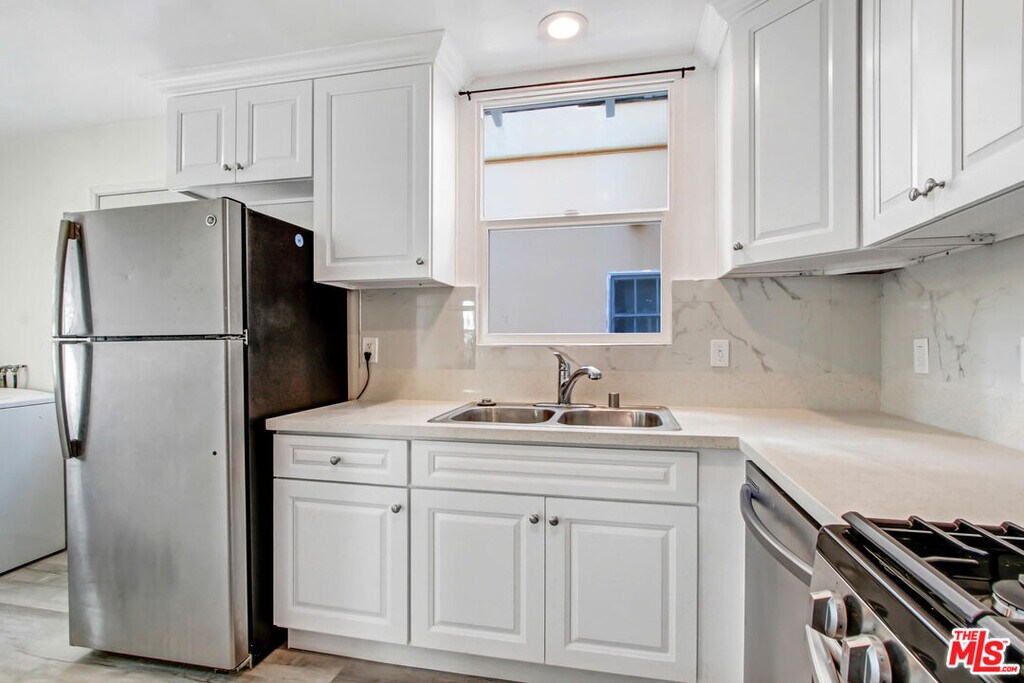 Gorgeous light-and-bright home in Santa Monica right on Montana Ave! From the street, step into the beautifully manicured courtyard. Once inside the front door, there is an open-concept living room and fully remodeled kitchen with quartz counters and SS appliances. A beautifully updated bathroom and two nice-sized bedrooms are around the corner to the right. An abundance of natural lighting floods in through the newer windows, illuminating the refinished hardwood and new laminate floors. There is a floor furnace in the center of the space, side-by-side washer and dryer in-unit, and one-car parking space in the garage with plenty of street parking just steps away. Only a few short blocks away are trendy restaurants, quaint cafes, and all of the best Montana Ave has to offer. Plus, within the highly-coveted Franklin and Lincoln school district! MLS# 25605243