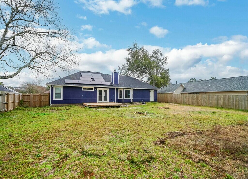 AVAILABLE... April 14, 2026!! 3bd/2bth home located in East Navarre for a quicker commute to Hurlburt Field AFB! This charming light blue home boasts solar panels and upgrades throughout the entire home! The home features a fully fenced yard, a double car garage, stainless steel appliances and a corner fire place in the family room. The back doors exit to an amazing deck space for entertaining and grilling out. NO smoking. Pets allowed upon approval with a non-refundable pet fee. NO smoking. 600 minimum FICO credit score required in addition to meeting rental criteria. Pets allowed upon approval with a non-refundable pet fee.All applicants are required to complete an application on regardless of if they own a pet or not.