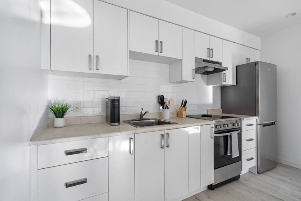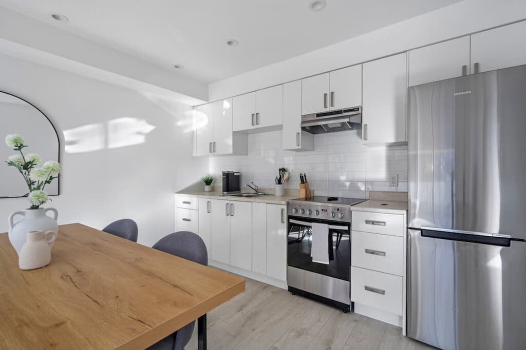 The advertised rate of C$2,203/month is the lowest available price, based on a 30 day(s) stay with a move-in date of March 11, 2026. Rates vary depending on the duration of stay, season, and other parameters. For exact pricing and additional pricing components, please visit our website and enter your desired move-in and move-out dates. The rate is applicable when billed upfront; it can be higher if billed in multiple payments. Feel at home in this lovely 1-bedroom condo situated in the peaceful Kitsilano neighborhood of Vancouver, offering a peaceful ambiance and stylish, comfortable interior design while being centrally located and accessible to Vancouver's best areas and attractions. This newly furnished home offers all the essentials you could need, from fresh linens to a fully stocked kitchen. The space is characterized by bright textures and contemporary furnishings. It offers a full kitchen, a large living space with a patio, and a full bathroom. The composition of the condo is breathable and refreshing, expressed through an open-concept layout. Parking is available upon request and subject to availability prior to your check-in date. Please make sure to request parking in advance to confirm if a stall is available for your stay. When requesting, kindly provide your car type and license plate number. You will have access to the entire unit and all amenities within, as well as access to a shared laundry room within the building. The surrounding areas are Arbutus Ridge and South Granville, both must-visit neighborhoods within Vancouver. The West Side of Vancouver is known for its tree-lined streets, beautiful homes, and well-manicured gardens. The area is a mix of residential streets and bustling commercial areas. Some of the most popular commercial streets in the area include West Broadway, West 4th Avenue, and West 10th Avenue, all of which feature a variety of boutique shops, restaurants, and cafes. These streets are also home to popular outdoor markets, like the Kitsilano Farmers Market, where visitors can sample locally grown produce and artisanal foods. Getting around Vancouver's West Side is easy with its well-connected transit system. TransLink operates several bus routes, including the 99 B-Line, connecting the area to Downtown Vancouver. The SkyTrain is accessible via the Canada Line and Millennium Line, while the SeaBus provides scenic views of the harbor. The neighborhood is bike-friendly with rental options available, and walking is a great way to explore. The apartment is 2 blocks from Connaught Park, 1 block from the nearest grocery store and pharmacy, 4 blocks to 4th Avenue, and a 15-minute drive to YVR airport. No parties, events, or large gatherings are allowed, and smoking is prohibited in or on the property. [SI]