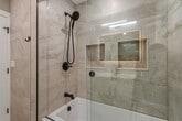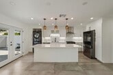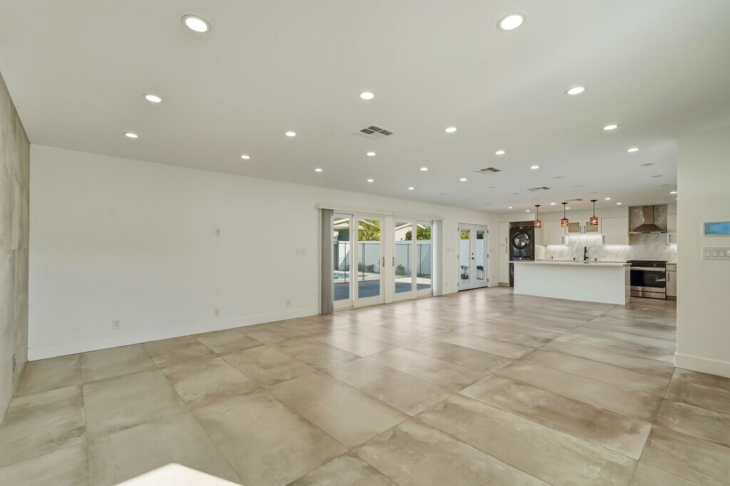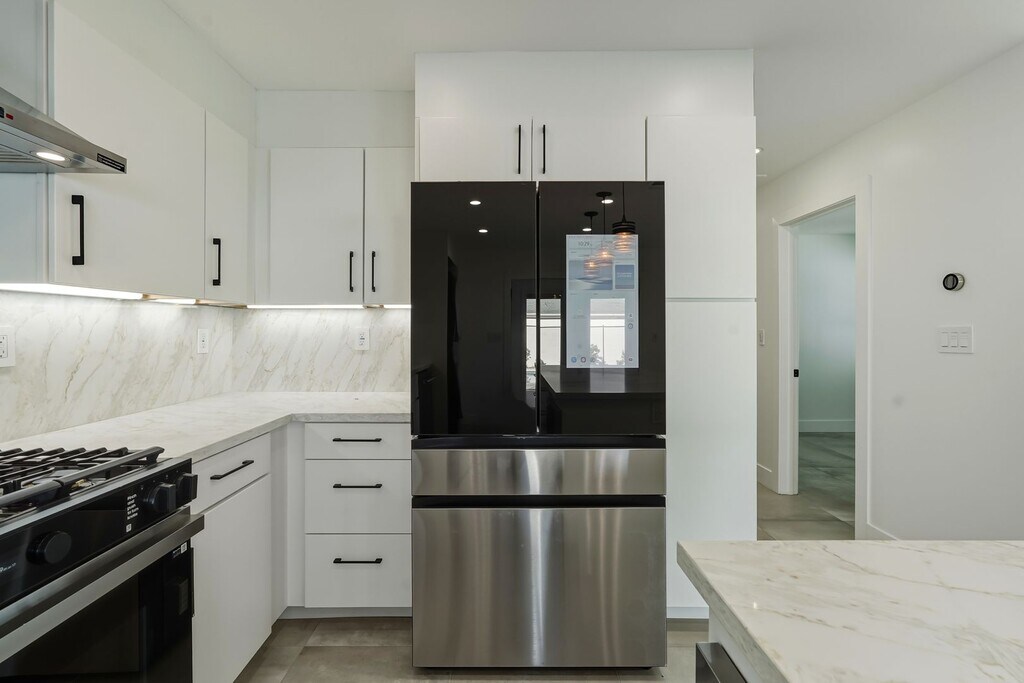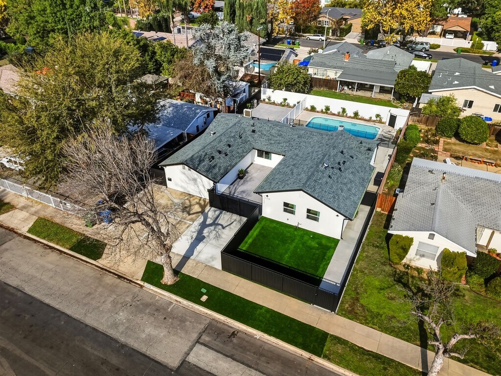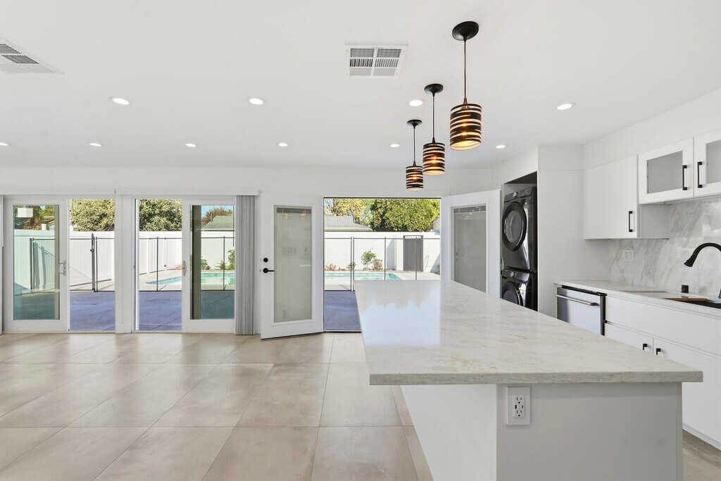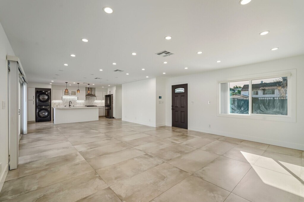Welcome to an ultra-luxury, brand-new reconstructed home in the heart of Canoga Park, just a couple blocks from the Topanga Mall, The Village, Costco, Amazon Fresh, Fallbrook Plaza, and minutes from West Hills. This is not a renovation — the property was torn down to the frame and rebuilt with all new electrical, plumbing, roof, kitchen, tile, windows, doors, lighting, fencing, and landscaping. INSIDE THE HOME This 3-bedroom, 2-bath home spans approximately 1,400 sq ft with a completely open-concept layout and massive natural light. The living room, dining area, and kitchen together include over 40 recessed lights plus designer island pendants and under-cabinet lighting. The living room features two large sliding doors, a set of double French doors, and a huge window that fills the home with light and opens directly to the outdoor areas and pool. DESIGNER KITCHEN A true showpiece. • All Samsung Bespoke appliances, including a smart refrigerator with touchscreen • KitchenAid dishwasher • Full drawer-style cabinetry (no cheap doors) • Electronic microwave drawer built into the 8-foot island • Highest-end finishes, stone, and tile throughout • Massive storage and prep space • Beautiful under-cabinet lighting • Wide, open layout perfect for entertaining The entire home is finished in premium tile flooring — elegant, modern, and easy to maintain. BEDROOMS & STORAGE Each bedroom includes: • Two windows for natural light • Recessed lighting • Floor-to-ceiling custom closets with mirror doors • Interior closet lighting • Built-in closet systems with 50% shelving / 50% hanging space Two bedrooms have 10-foot-wide closets (huge). One bedroom has a full 5-foot closet redesigned from scratch. LUXURY BATHROOMS • Floor-to-ceiling designer tile • Floating modern vanities • LED anti-fog mirrors • Custom glass shower doors • Multiple recessed niches for storage Every detail feels brand new, modern, and high-end. ?