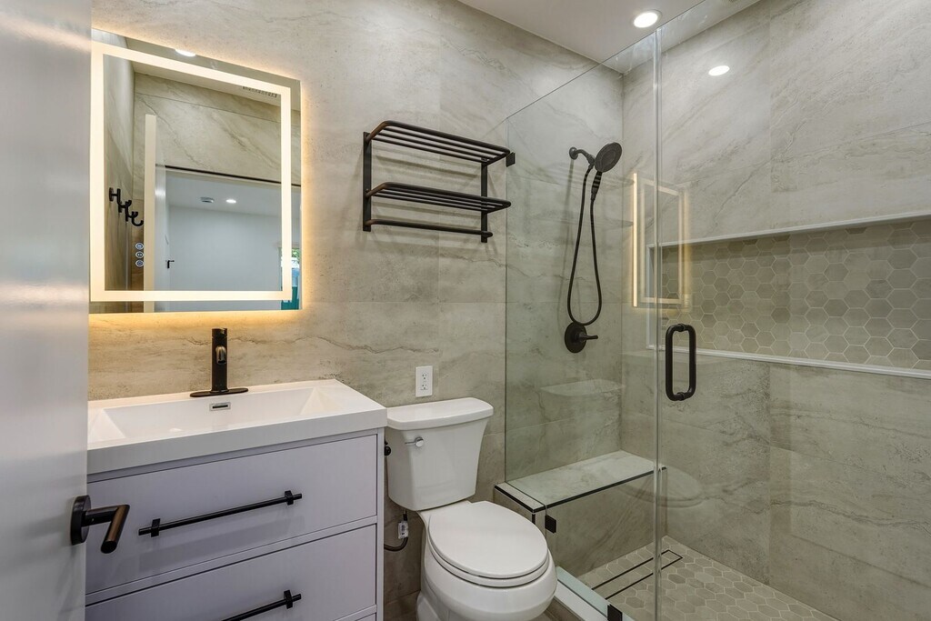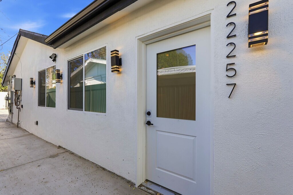 This property is completely new from the ground up, featuring premium finishes, high-quality construction, a private gated entrance, and its own fully enclosed yard with stamped concrete and new landscaping. INSIDE THE HOME This home is designed with comfort, privacy, and upscale living in mind. You’ll find two oversized bedrooms, each with a private en-suite bathroom, luxury tile flooring throughout, and recessed lighting in every room. TWO PRIVATE MASTER-STYLE SUITES Each bedroom includes: • Its own private full bathroom • Floor-to-ceiling designer tile • Custom glass shower doors • Modern floating vanity • LED anti-fog mirror • Walk-in closet with built-in shelving • Recessed lighting • Multiple windows with great natural light This layout is perfect for roommates, couples who want separation, remote workers, or anyone wanting two full suites. HIGH-END DESIGNER KITCHEN Built with premium materials and luxury finishes: • Samsung Bespoke refrigerator with touchscreen • Samsung Bespoke microwave • KitchenAid dishwasher • All-drawer cabinetry (no standard cabinet doors) • Beautiful stone counters and backsplash • Under-cabinet lighting • Large format premium tile flooring • Recessed lighting throughout The kitchen is sleek, modern, extremely functional, and designed for people who appreciate clean lines and top-tier appliances. PRIVATE OUTDOOR SPACE Your own fully private yard — completely separate from the main house: • Large stamped-concrete patio (very low maintenance) • Dwarf lemon tree • Brand-new colorful landscaping • Fully enclosed with 6-foot fencing • Private gate and private entrance • Plenty of space for outdoor furniture, BBQ setup, or storage Overall, this outdoor area feels quiet, secure, and spacious. LOCATION One of the most desirable pockets in Canoga Park — very close to West Hills. Minutes to: • Topanga Mall • The Village • Fallbrook Plaza • Costco • Crunch Fitness • Trader Joe’s • Amazon Fresh • Parks, restaurants, and more The entire neighborhood is rapidly improving with new developments and retail.