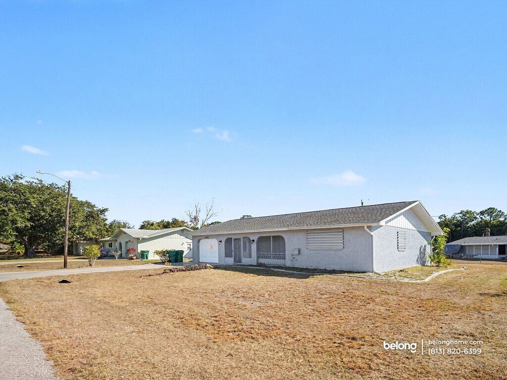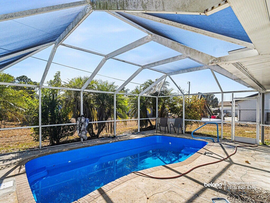 Sunlit interiors and an expansive screened-in lanai set the tone for relaxed coastal living here, paired with a private pool that anchors the outdoor space. This 2-bedroom, 2-bath layout also includes a one-car finished garage, in-home laundry, and a setting that leans into Port Charlotte’s easygoing rhythm. Inside, the living area feels open and airy, with neutral finishes that keep the space bright and adaptable. Sliding doors connect indoor living to the screened lanai, creating a natural flow toward the pool and offering a breezy backdrop for everyday downtime or casual gatherings. The kitchen features generous cabinetry, ample counter space, and stainless steel appliances. Its placement supports both daily routines and relaxed meals, keeping everything within easy reach. Two pets are welcome, making this setting easy to share with your four-legged companions. Located just minutes from Charlotte Harbor, you are close to waterfront dining, boating access, and scenic walking paths. Grocery options like Publix and Winn-Dixie are nearby, with Port Charlotte Town Center offering shopping and dining variety. Golf enthusiasts will appreciate proximity to courses such as Port Charlotte Golf Club, while local parks and preserves provide space to unwind outdoors. *Pet weight limit is 20 lbs - if your pet exceeds this, please reach out to see if we can accommodate! *Our homes come as-is with all essentials in working order. Want upgrades? Request it through the Belong app, and our trusted pros will take care of the rest!