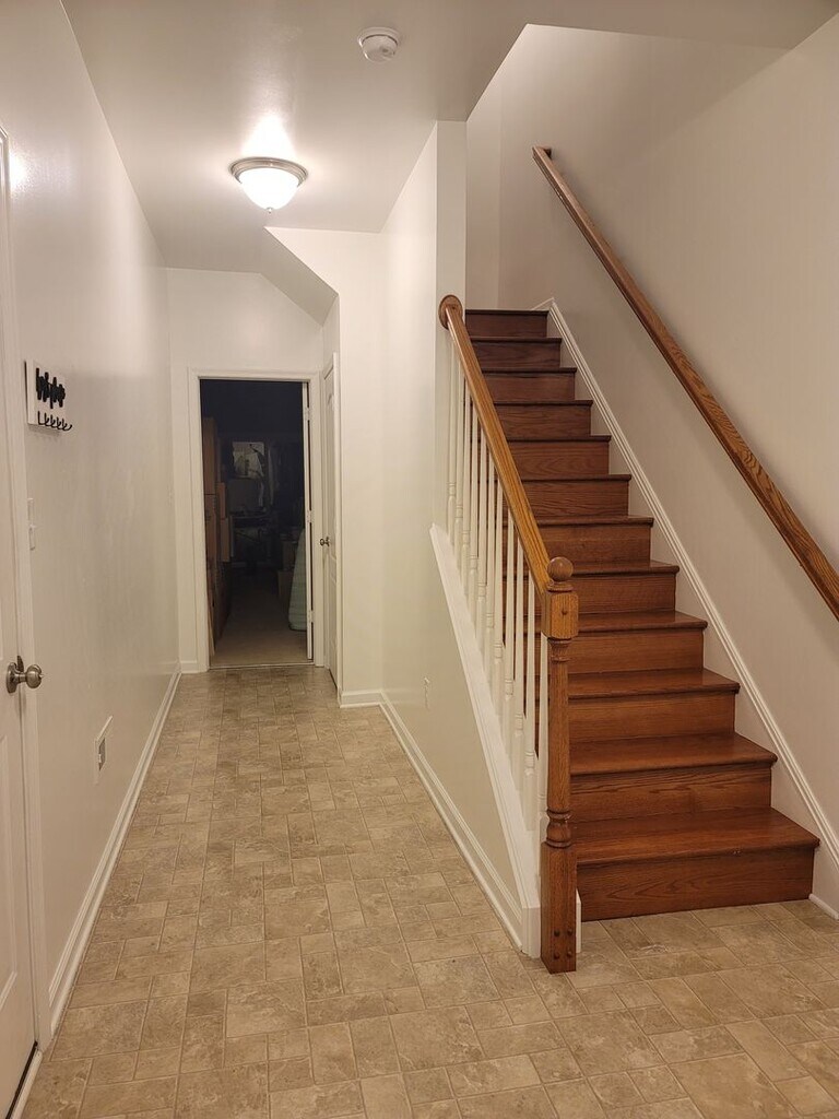 Three level 3 bedroom 2 1/2 bath townhouse with 1 car garage. Enter into the foyer and access the 1 car garage or finished area with washer and dryer and slider to rear yard. Flight of steps up to the main level with separate living room that adjoins to dining room and kitchen featuring new granite counters, 42 inch cabinets and gas cooking. Additional sunroom area off kitchen with door to rear deck. Upstairs is the main bedroom with private bath and walk in closet, additional two bedrooms and full bath. Tenant is responsible for all utilities, landscaping and snow removal.