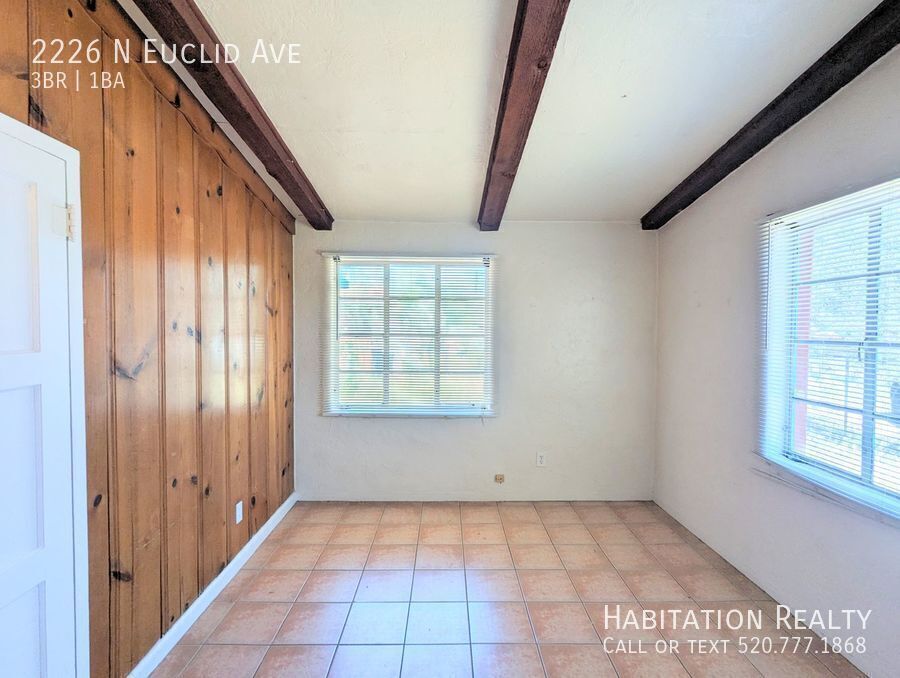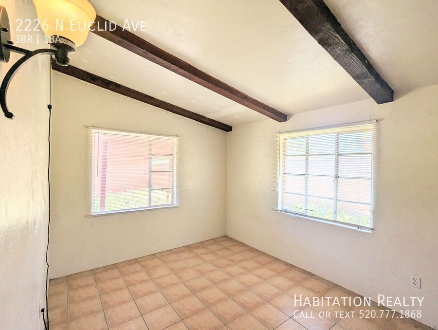 ******We only accept applications at ******** *****Half off First Month's Rent!***** This is an excellent 3 bedroom, one bathroom home, with an office den, is located just north of the University near the corner of Edison and Euclid. The Sausage Deli is literally a few steps away, so you will never go hungry! This home also has has a cool ski-lodge vibe inside, with a natural stone fireplace, along with dark-stained knotty pine paneling and ceiling beams. The extra den makes a great study room, spare bedroom, or office! 3 bedroom, 1 bath 1336 Square feet Refrigerator Oven/Stove University Area Office/Den Decorative Fireplace Dishwasher Central AC Off street parking $2642 due at lease signing. This includes a $2042 refundable security deposit, a $350 non refundable cleaning fee, and a $250 non refundable leasing/admin fee. First month's rent due at move in. Tenant pays all utilities. Electric and gas are separately metered, and we charge $75 per month for water, sewer, and trash. We do charge a $55 per person application fee, and all potential tenants will be screened for credit, prior evictions, and criminal history. Student's without an income will require a guarantor. Well behaved and loved pets are welcome, with an additional $200 non-refundable fee, per pet. Equal housing opportunity, of course! Central Tucson University Area