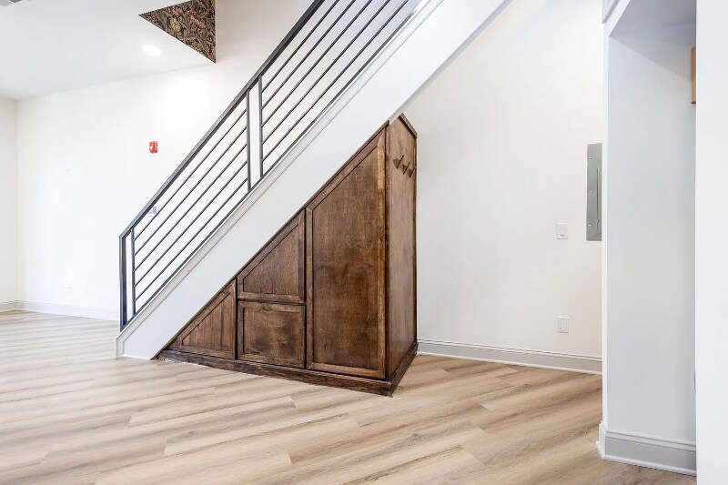 Property Id: 2201337 Designer Finishes & Outdoor Views Await! Experience a home where high-end design meets effortless functionality. Every space has been thoughtfully crafted for modern comfort and timeless style. The bathrooms showcase custom mid-century inspired vanities with matte black fixtures, bold patterned tile, and sleek subway tiling in calming shades of gray and sage. Throughout the home, unexpected touches, like oversized floral wallpaper and striking black metal railings and sophisticated flair. The kitchen shines with dark cabinetry, bright stone countertops, and a statement tile backsplash paired with a rustic wood floating shelf. Smart built-in storage under the staircase offers both beauty and practicality. Step outside to your private balcony and take in sweeping views of the tree-lined street and park. Your own serene escape in the city. Schedule your tour today!