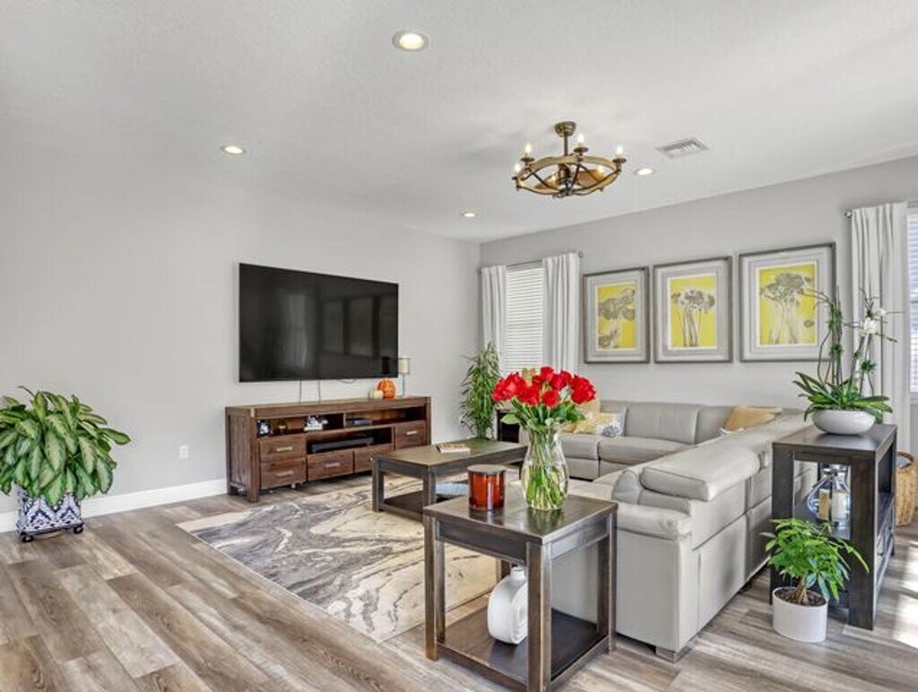 Courtesy of Gold Crown Unlimited, LLC Posted by Andrew Coleman with EXP Realty . Welcome to the highly desirable community of Madison Green! Located in the exclusive Walden Village, this stunning pool home showcases exceptional upgrades and elegant finishes throughout. The spacious Monticello floor plan offers 5 bedrooms and 3 bathrooms, providing the perfect blend of comfort and style. Step inside and immediately feel the refined elegance you've been searching for. The brand-new custom kitchen is a showstopper, featuring Bosch appliances, quartz countertops, under-cabinet lighting, and a second wall oven—perfect for hosting and entertaining.