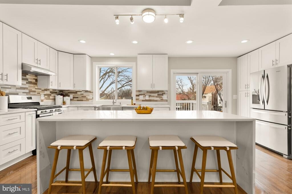 Beautifully renovated detached home in Woodridge, delivering a modern style, generous space, and exceptional convenience. Featuring five bedrooms, three-and-a-half baths, and a finished attic, the home’s bright and airy layout is designed for both everyday comfort and effortless entertaining. The open-concept main level features a welcoming living room with a cozy fireplace that flows seamlessly into the dining area and gourmet kitchen. Here, you’ll find quartz countertops, stainless steel appliances, white shaker cabinetry, and a large waterfall island. Sliding doors off the kitchen lead to a spacious rear deck—ideal for al fresco dining or relaxing outdoors. Upstairs, discover three bedrooms, two full baths, and convenient bedroom-level laundry. The primary bedroom offers an en-suite bath, a walk-in closet, and a private balcony overlooking the backyard. A finished attic provides a versatile bonus/storage space. The fully finished lower level extends the living possibilities with a generous family room, a kitchenette, two additional bedrooms, a full bath, and walk-out access to the rear yard. A generously sized backyard with patio and off-street parking completes the space. Located blocks from Rhode Island Ave Main Street features including Zeke's Coffee, Alamo Drafthouse, Bryant Street Market; Langdon Park and Pool; and the Woodridge Library; and with easy access to Monroe Street Market, the Metropolitan Branch Trail, the Shops at Dakota Crossing, and the Rhode Island Ave-Brentwood and Brookland-CUA Metro stations, this home offers unbeatable access to shopping, dining, parks, and transit. Easy commuting and endless weekend possibilities await. A turnkey opportunity blending comfort, versatility, and urban convenience. Welcome home.