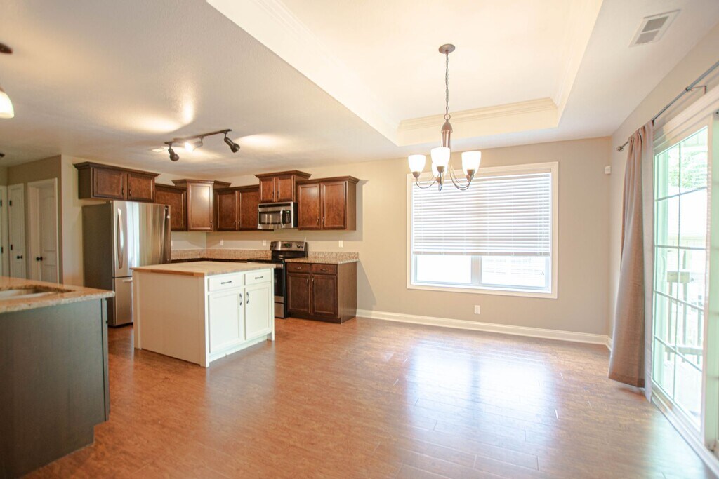 Beautiful four bedroom ranch home conveniently located just minutes from shopping, restaurants, and more! This home features an open floor plan with a spacious living room complete with a cozy fireplace, flowing seamlessly into the eat in kitchen with stainless steel appliances and a large island! The primary suite offers a full bath with a jetted tub and tiled shower, while all guest rooms are generously sized. Enjoy the outdoor space with a covered back deck overlooking a peaceful, tree lined lot! Pet Rent Scale - Dogs: $30.00 per month - Cats: $35.00 per month - Restricted Breeds: $50.00 per month