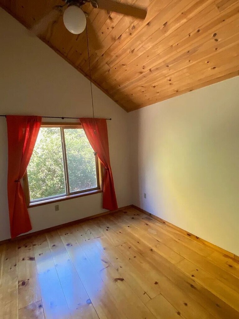 Recently Renovated! Approximately 704 square feet of living space w/ a large wooden deck. Knotty pine vaulted ceilings and flooring. Wood burning stove plus a wall heater and gas range. Basement has a washer & dryer provide with additinal room for storage. HOA dues included with the monthly rent. Scenic view of mountains and forest.