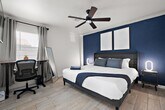 Feel at home in this charming single-story 1-bedroom apartment, featuring a king-size bed and a full bath. The apartment is fully furnished and equipped with central AC and heating, ensuring comfort throughout your stay. Enjoy the convenience of in-unit laundry and free parking, making it an ideal choice for various lifestyles. The apartment boasts a full kitchen with modern appliances, including a full-size fridge, 4-burner stove, microwave, oven, dishwasher, air fryer, and blender. You'll find all the essentials for cooking, such as cookware, seasoning, and a coffee maker with ground coffee and mugs. The dining set and two smart TVs add to the comfort, while blackout curtains ensure a restful sleep. Pets are welcome with a non-refundable fee of $150 per pet. Enjoy the convenience of free parking during your stay. Located just 6.5 miles from downtown Phoenix, this apartment offers easy access to popular attractions like Chase Field, Phoenix Rising FC Stadium, and the Phoenix Zoo. It's also conveniently close to several hospitals, including Saint Joseph's Hospital and Banner - University Medical Center, as well as Grand Canyon University and Arizona State University. The Phoenix Airport is just 10.4 miles away, making travel a breeze. Self check-in is available with a smart lock and lockbox for your convenience. The apartment is pet-friendly, and a non-refundable pet fee applies. The apartment includes a desk and chair, along with high-speed WiFi, making it remote work-friendly. A laptop computer is not included. [SI]