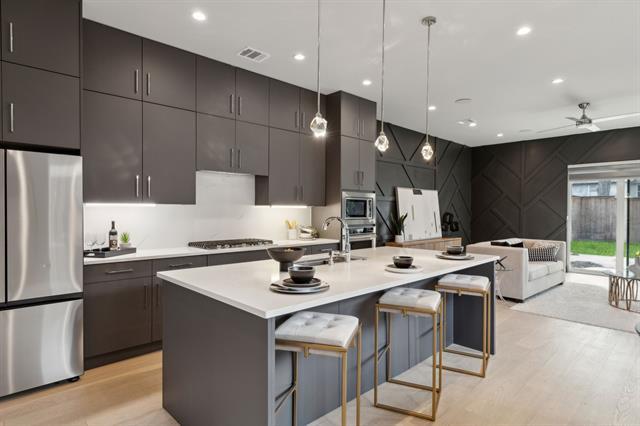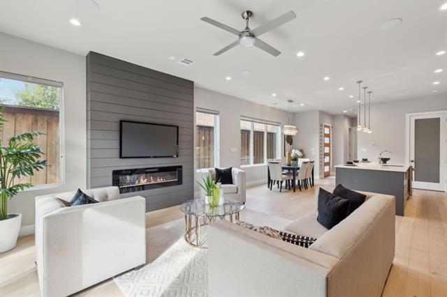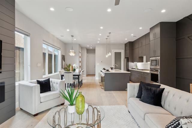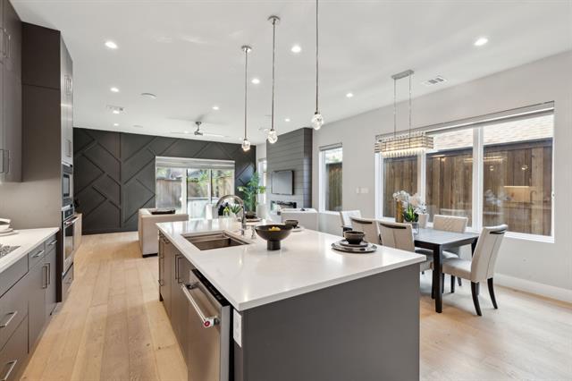 Modern Living in Prime Oak Lawn Location 2228 Wycliff Avenue delivers sleek design and everyday convenience in the heart of Oak Lawn—just minutes from Downtown and Uptown Dallas. This striking modern townhome features wide-plank oak floors, walls of natural light, and a stylish fireplace that anchors the open living space. The chef’s kitchen offers flat-front cabinetry, quartz countertops, premium appliances, and a large island perfect for entertaining. Sliding glass doors extend the living area to a private fenced backyard. Upstairs, spacious bedrooms include spa-inspired baths and generous storage. Built with energy efficiency in mind, this home also provides a two-car garage, contemporary curb appeal, and unbeatable walkability in one of Dallas’s most dynamic neighborhoods
