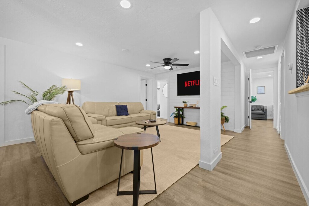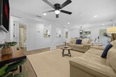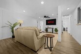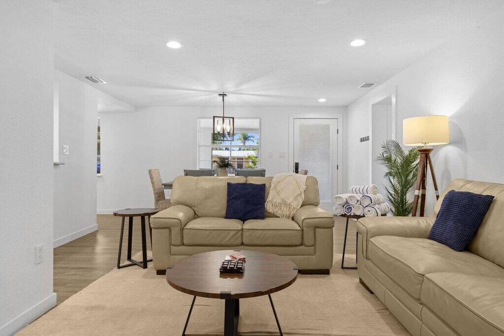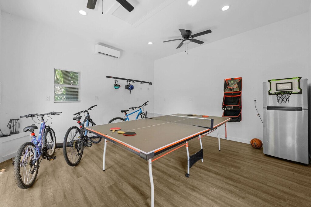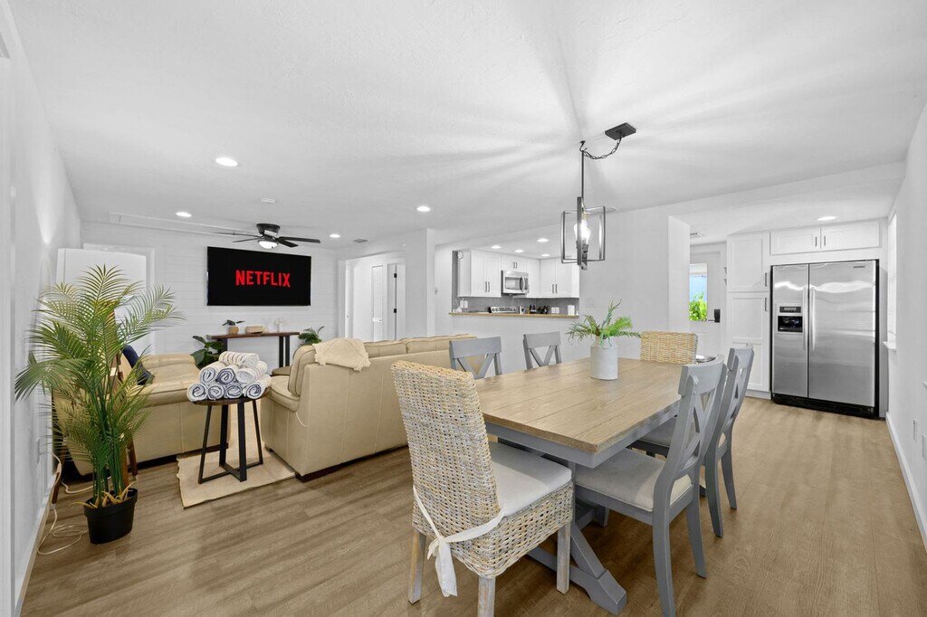 This 3-bedroom home in Sarasota, FL, offers everything you need for an amazing vacation. Enjoy the private pool, fire pit, outdoor patio and dining area, BBQ grill, and game house with ping pong table, basketball hoops, and bikes. The home also features a den with a smart TV and dedicated workspace, a fully stocked kitchen, plush beds, high-speed Wi-Fi, and ample parking. Family-friendly amenities include a high chair and pack ’n play, and the home is dog-friendly. Pack your bags and bring the whole crew—this 3-bedroom, 2-bathroom home sleeps up to 8 guests and is designed for both relaxation and fun. Start your mornings with a splash in the private pool, lounge on the patio, or wind down by the fire pit under the stars. Feeling playful? Head to the indoor game room for a round of ping pong or grab the bikes and cruise around the neighborhood like a local. Whether you’re here for sunny pool days, cozy nights by the fire, or friendly game competitions, this home has all the right vibes for an unforgettable Sarasota getaway. Up to 2 dogs are allowed for $125 per stay, no cats please. Parking is available in the driveway with a carport for up to 5 cars. Street parking is not allowed. Conveniently located, this home offers easy access to nearby attractions, shopping, and dining options. Explore Siesta Key Beach, known for its white quartz sand and turquoise waters, or visit the John & Mable Ringling Museum of Art and Ca’ d’Zan. Enjoy the tropical paradise of Marie Selby Botanical Gardens or the outdoor adventures at Myakka River State Park. St. Armands Circle offers vibrant shopping and dining experiences. Nearby restaurants include Owen’s Fish Camp, The Hub Baja Grill, Yoder’s Restaurant & Amish Village, Shore on St. Armands, and Columbia Restaurant. Check-in is at 4pm and check-out is at 10am. No parties are allowed, and violations may result in immediate termination of the stay. Guests must be 25 years or older to book this property. If you're interested in a long-term stay, please inquire about availability. The den includes a smart TV and a dedicated workspace, making it ideal for remote work. High-speed Wi-Fi is available throughout the home. [SI]