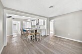 One or more photo(s) has been virtually staged. Move right into this beautifully renovated 2-bedroom,1-bath home in a prime Palm Harbor location. The inviting living room flows seamlessly into the updated kitchen,complete with brand-new STAINLESS STEEL APPLIANCES,QUARTZ countertops,backsplash,solid wood cabinetry,a breakfast island,and plenty of storage. A cozy breakfast nook and a breakfast bar overlooking the light-filled dining and family room combo provide multiple options for dining and entertaining. Fresh neutral paint and new VINYL PLANK FLOORING run throughout,complementing the newly UPDATED BATHROOM with a shower/tub combo. For convenience,there’s also an inside laundry room with a stackable washer and dryer. Step outside to enjoy the expansive 40x26 REAR PATIO and smaller fenced yard - perfect for relaxing,barbecues,or entertaining. Beyond this area lies an even larger fenced yard,ideal for storing a boat. With a boat ramp just a quick ten minute drive away,you can be cruising the Gulf in no time. Additional peace of mind comes with a NEW roof,A/C,windows,and electrical panel. Stylish,comfortable,and functional—this move-in ready home offers it all,in a fantastic location close to shopping,dining,and top-rated schools. MLS# TB8423723