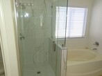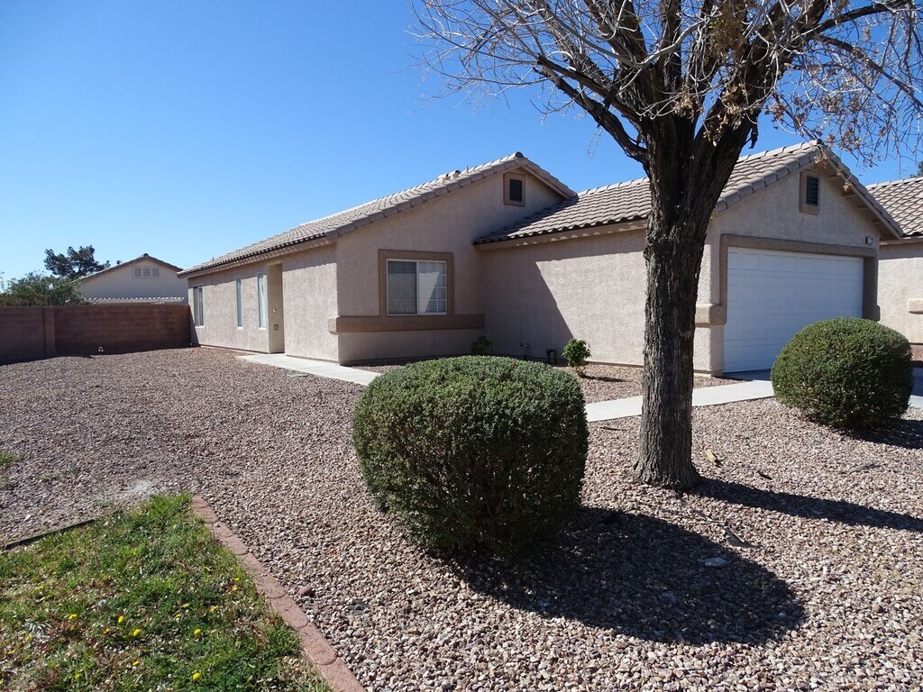 Beautiful, well kept SINGLE STORY 3 BEDROOM HOME convenient to Nellis AFB; Freshly painted, remodeled primary bath in the process of being cleaned and made ready for you to move in; Tile flooring throughout; Bright, open living room with vaulted ceiling; Kitchen with new stainless refrigerator, gas range and dishwasher; Separate family room; Primary suite with a closet and a walk in closet, cable outlet, double sink, deep soaking tub and separate shower; Both guest bedrooms with ceiling fan, light and closets; Full guest bath; Laundry closet with washer and dryer; Large, easy care, desert landscaped yard; Convenient to the I-15, Nellis AFB, shopping and dining; Rent includes the Resident Benefit Package! To schedule a showing or for more information please call or email Jackie at or