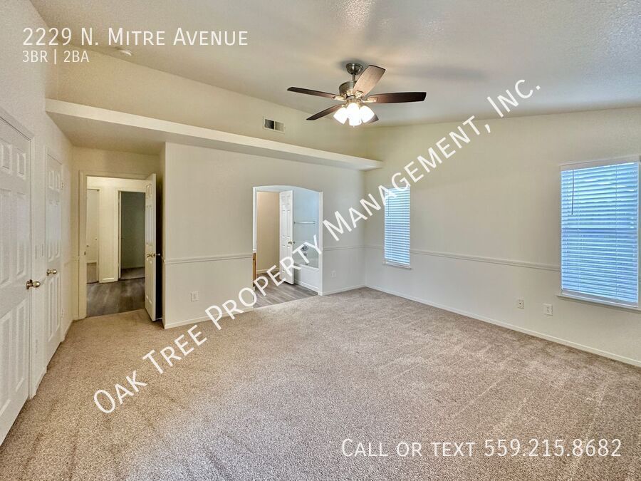 CLICK HERE to schedule a showing: VIRTUAL TOUR>>> AVAILABLE NOW! Located in Fresno off of Clinton and Blythe, this charming 1,744 square foot home features three bedrooms, two full bathrooms, a living room, dining area, kitchen, breakfast area, indoor laundry room, attached two-car garage, and spacious backyard. Yard service is included. With close proximity to schools, dining, shopping, and much more, you won't want to miss your opportunity to make this your next home! 10-month lease. No pets. A refrigerator is provided, tenant will need to supply their own washer and dryer. Fireplace not included. Tenants will be responsible for all utilities including PG&E, water, sewer, and trash. All tenants are required to obtain renters insurance prior to taking possession of the property and will be required to submit a profile through prior to final approval. READY TO APPLY? Please visit our direct website at and click on the prospective applicant's tab to download our rental application and return it to our office at 516 Bullard Avenue, Clovis, CA 93612.