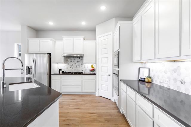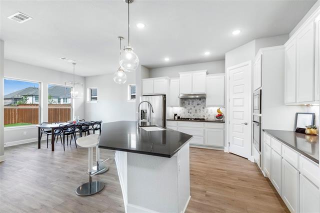 Highly desired FRISCO ISD schools! This stunning like new home is located in Kings Court and is MOVE-IN ready! You are greeted by a gorgeous two story formal entry. Light colored LVP flooring throughout the first floor. The open layout is bright with walls of windows and creates ease for entertaining. Cozy up next to the gas fireplace or cook away in the beautiful bright white kitchen with gas cooktop and black quartz countertops. All bedrooms are upstairs. The Primary offers a large soaking tub and separate full glass enclosed shower. 2 additional bedrooms, a bathroom and a game room are also on the second floor. Laundry is a breeze with a convenient upstairs location! The backyard is spacious and offers a covered patio and a BOB wood fence.