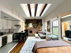 Unique loft studio at the top floor, 2.5 flights up, in a well-maintained townhouse turned into an intimate 5-unit apartment building. Located on a prime Chelsea block on W 19th Street between 8th and 9th Avenue, this apartment is steps away from Google's HQ, Chelsea Market, the Meatpacking District, the Hudson River Greenway, and Little Island. Enjoy easy access to the adjacent neighborhoods of the West Village, Union Square, and Flatiron, all within a 5-15 minute walk. The subway is just a 3-5 minute walk away, with access to the L, ACE, and 1 lines. This spacious south-facing studio features a gorgeous skylight and a wood-burning fireplace, mainly used for decoration. With approximately 350 square feet, the high ceiling and skylight create an open and airy feel. The apartment includes a queen-size bed, a high-top dining area, blackout blinds, and a fully stocked kitchen with a microwave, air fryer, full appliances, and a dishwasher. The quality furniture is sourced from West Elm, CB2, Safavieh, and RH. The apartment offers close proximity to all major subway lines at either 14th (L, ACE, FM, 1) or 23rd (E, FM, 123) Street hubs, as well as the 8th and 9th Avenue buses heading Uptown and Downtown. It is steps away from the Gallery District, Hudson Yards, and Manhattan West, providing a vibrant and convenient urban living experience. The entire apartment is accessible with easy remote access via a lockbox right outside the building. Includes a work-from-home set-up, ensuring a comfortable and productive environment.