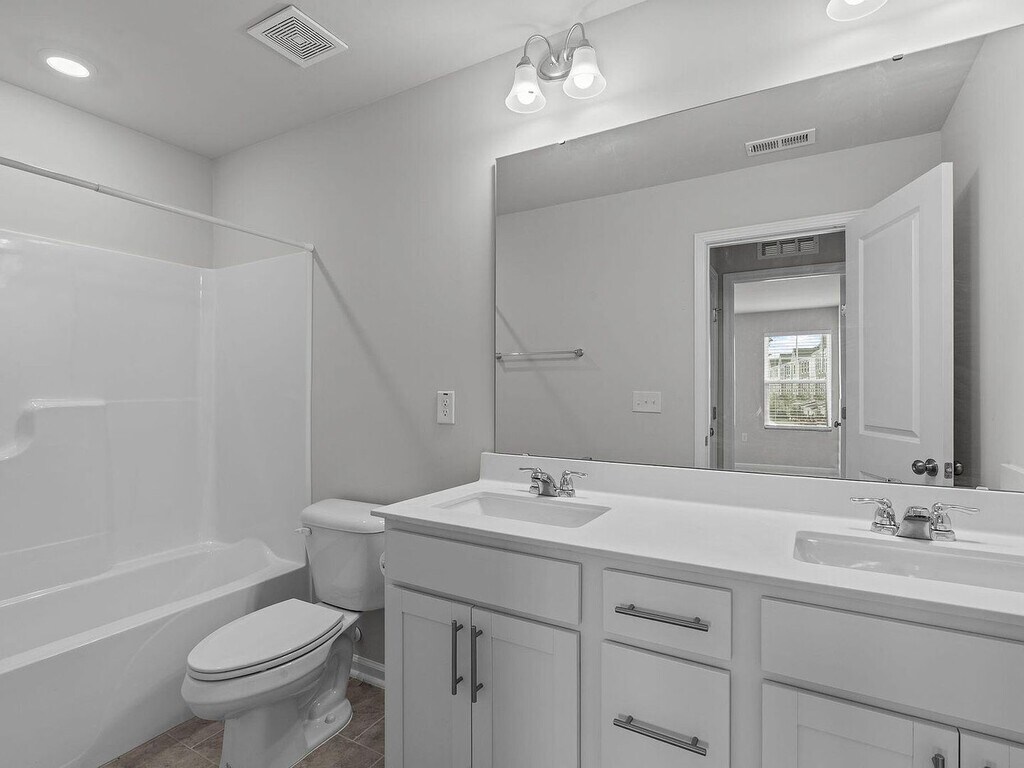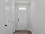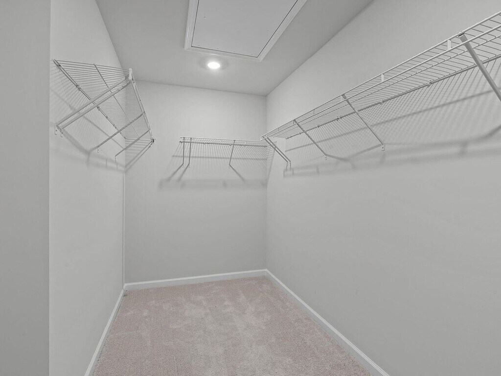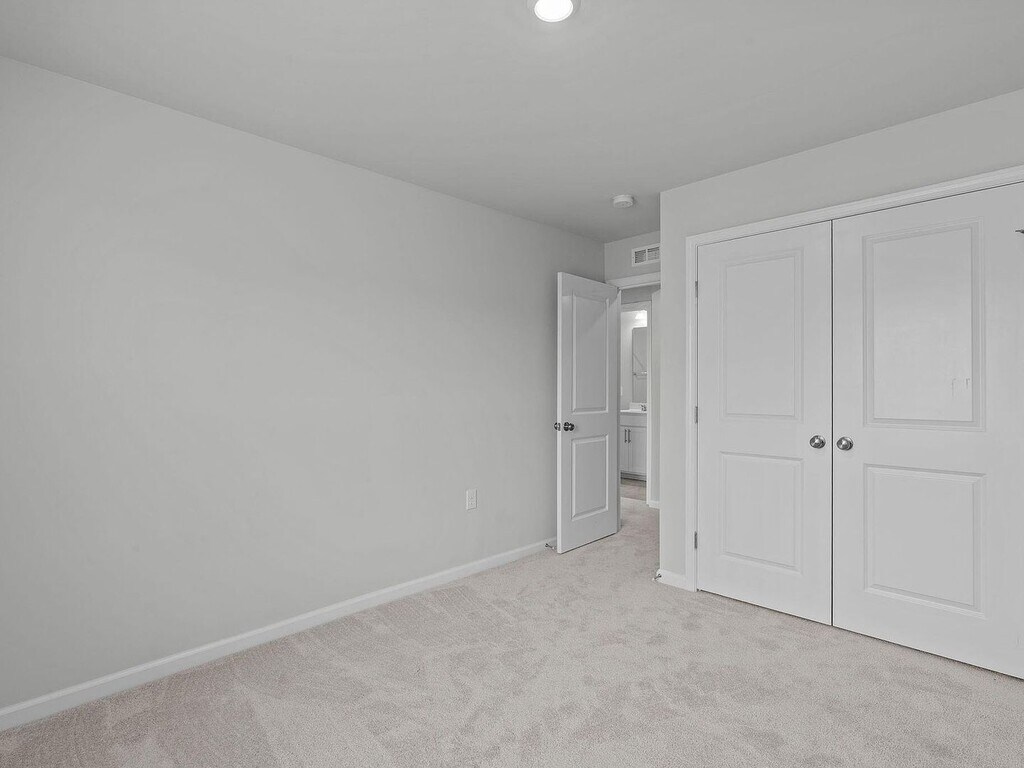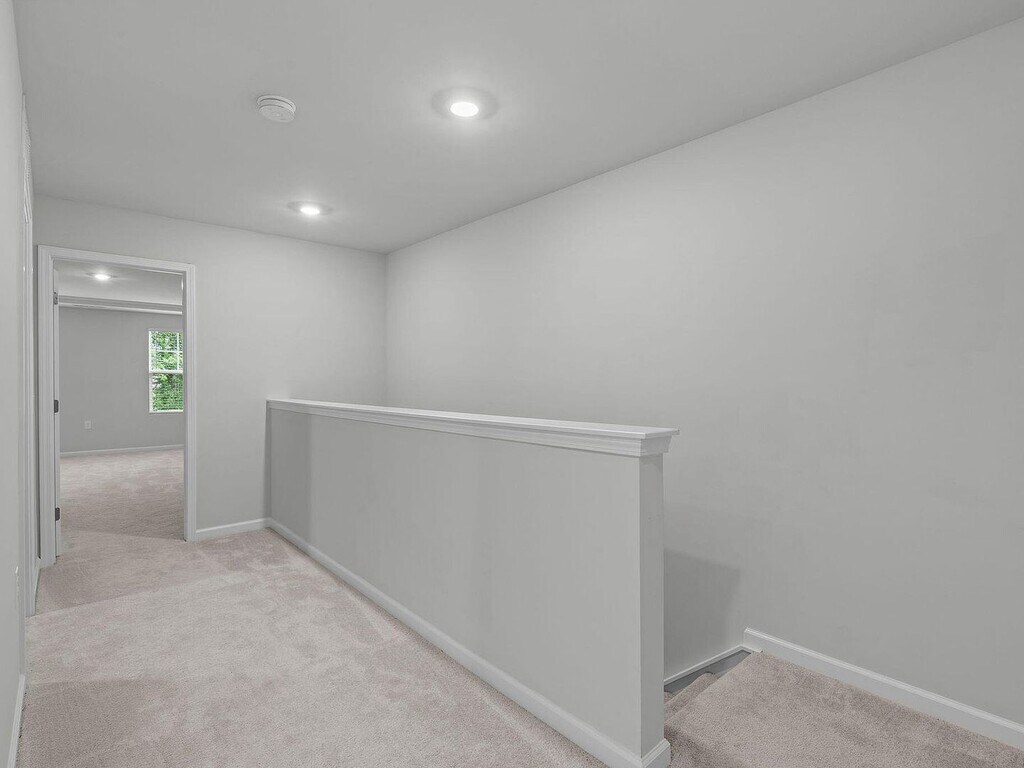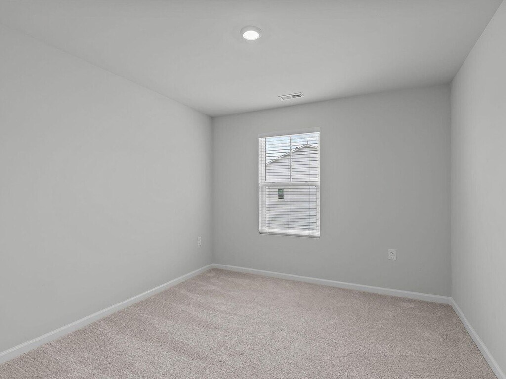 Like-new Carson II floor plan by Lennar in a completed community, move-in ready and packed with upgrades. Covered front porch, powder room entry, and an open kitchen, dining, and living area with luxury vinyl plank floors, crown molding, and LED lighting throughout the main level. Bright kitchen features white cabinetry, tile backsplash, quartz countertops, large island with stainless sink, pantry, and GE stainless appliances including gas range and refrigerator. Living room opens to a spacious screened porch with private wooded views. Upstairs offers an oversized primary suite with tray ceilings, walk-in closet, and ensuite bath with double vanity, tiled walk-in shower, and water closet. Two additional bedrooms with large closets, full hall bath with double vanity, and a separate laundry room with Samsung washer and dryer included. Window blinds throughout. Gas heat, one-car garage with power door opener and 240-volt plug. Enjoy community amenities including pool, dog park, playground, basketball court, picnic areas, walking trails, and green spaces. Convenient SE Raleigh location with easy access to downtown, highways, and everyday shopping.