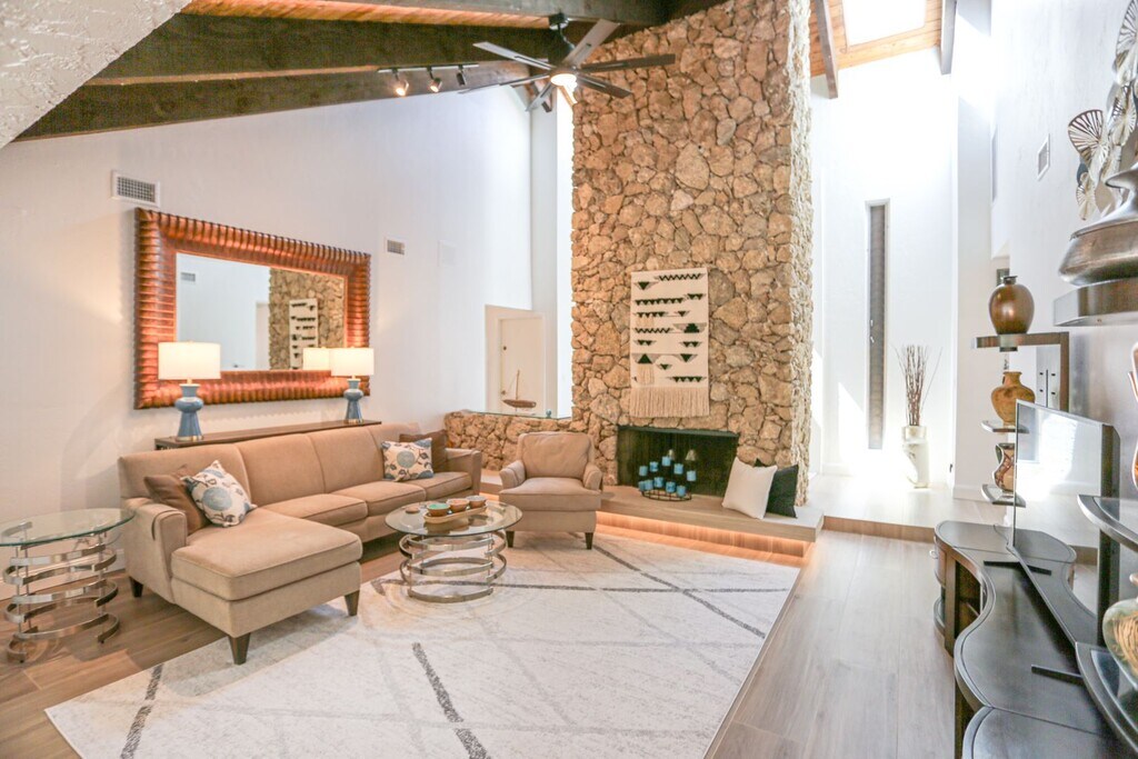 3-D VIRTUAL WALKTHROUGH AVAILABLE HERE: ** BEAUTIFUL FURNISHED 3 BEDROOMS PLUS A REMODELED DEN POOL HOME LONG-TERM/ANNUAL ** Welcome to this beautifully remodeled FURNISHED modern 3-bedroom plus a den, 2-bathroom home located in Lely in Naples, FL in Lely Golf Estates. This stunning property boasts a 2-car garage, golf course view, and a pool view from the outdoor living space with great landscaping. The interior features a den, floor to ceiling stone fireplace, skylights, and a brand new kitchen with over-sized island with stainless appliances. The home also has a recently installed new roof and new flooring throughout. Brand new guest bathroom. Central AC cooling and heating, City sewer not septic. There's also a private patio attached to one bedroom perfect for reading and enjoying your private space. Enjoy the Florida sunshine in your private pool or relax in the peaceful outdoor living space. Very peaceful backyard. Laundry inside unit. This home is very unique and one-of-a-kind. Don't miss out on this opportunity to live in paradise Naples. Pets may be considered upon approval. No cats, please. Sorry, cannot be unfurnished. ** TENANT PAYS FIRST, LAST AND SECURITY PRIOR TO MOVE-IN ** TENANT RESPONSIBLE FOR ELECTRIC, WATER, CABLE\INTERNET -- OWNER TAKES CARE OF LAWN & POOL SERVICE RATES: $4,200/ 12 Month annual $4,500/ For under 12 months