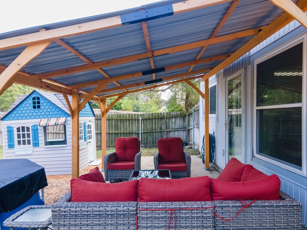 Come see this beautiful newly updated oasis home minutes from the golf course and elementary school! This home boasts 3 generously sized bedrooms and a large loft with a walk-in closet that could be a fourth bedroom, office, gym etc...The Primary Bedroom with his and her closets, his and her vanity sinks and duel shower. There's a fabulous open living room with fireplace and a formal dining/study space with built-in floor to ceiling bookshelf and wainscoting. There is ample natural light throughout the house with brand new (all replaced in February) double pane windows. The house also has a 1 year old new roof and new appliances - oven and dishwasher, farmhouse sink and Disposal. Quartz counters in the kitchen! The amount of storage throughout this house is impressive as well, lots of closets on both levels! There is also a large shed with outlets and switches installed in the backyard.. maybe for a man cave, she-shed or workshop. Newly built pergola offers shade from that Texas heat! Many other aspects of the home have been updated in the last year (carpet, lighting, etc.) and it's worth a look around.