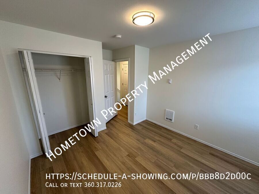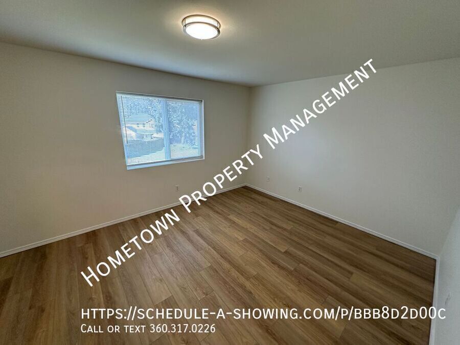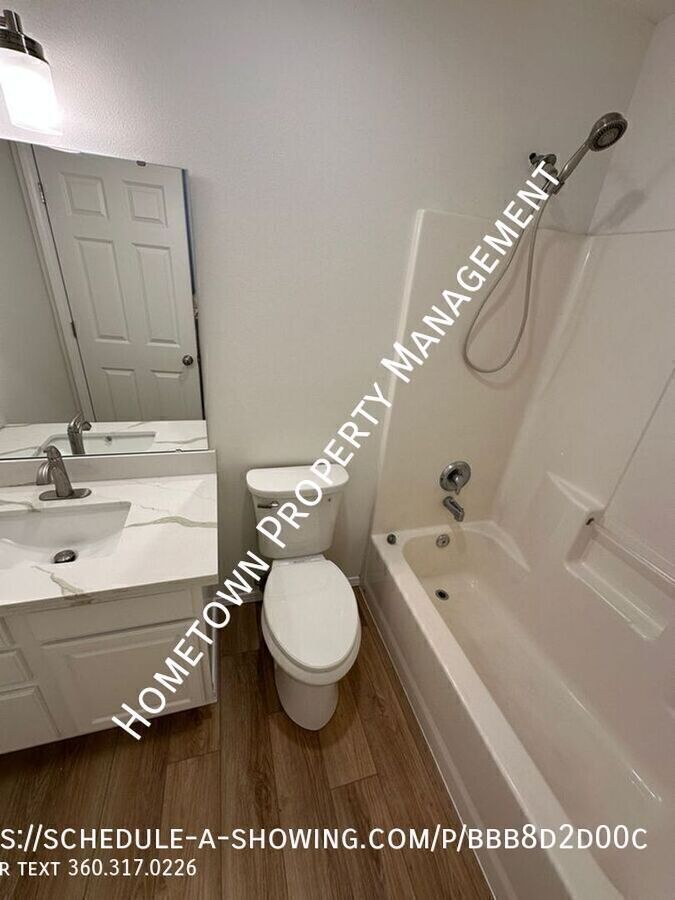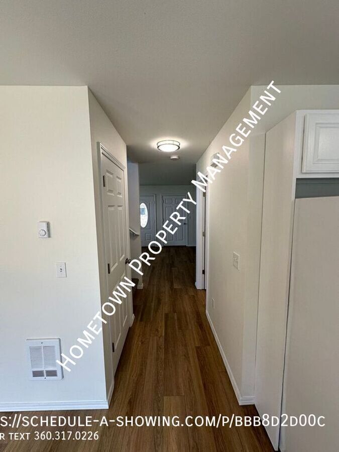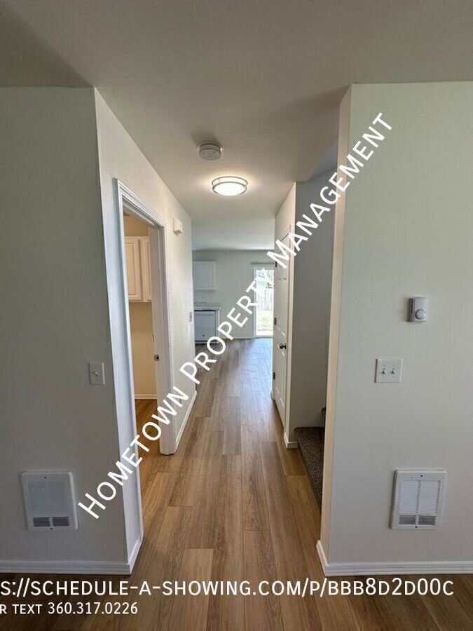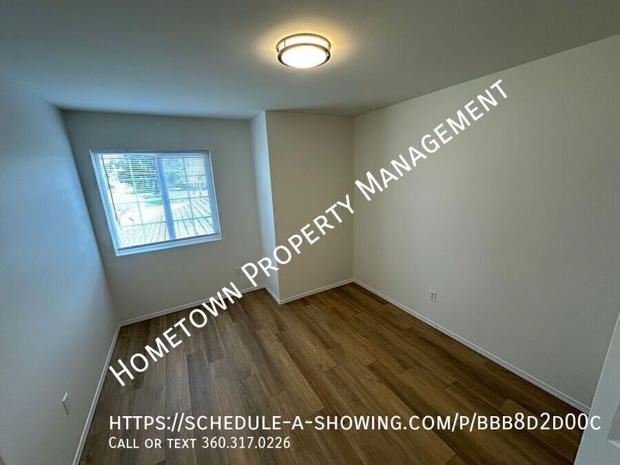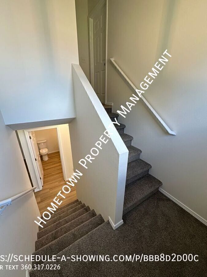 3 bed, 2.5 bath two-story duplex. Main level features spacious living room, convenient half bath with washer/dryer hookups, and kitchen with brand new quartz countertops, electric range/oven, refrigerator, dishwasher, and ample cabinet space. New laminate flooring runs throughout both levels, carpet on the stairs. Dining room with sliding glass door to fully fenced backyard. Primary bedroom includes walk-in closet and attached bathroom with shower/tub combo. 1-car garage. **NO SMOKING - NO ROOMMATES** Pets negotiable with monthly pet rent of $35 per pet. 12-month minimum lease. Great location, close to parks, shopping, and area amenities. 25 minute commute to JBLM. To schedule a no contact showing, call/text , or use the link below: