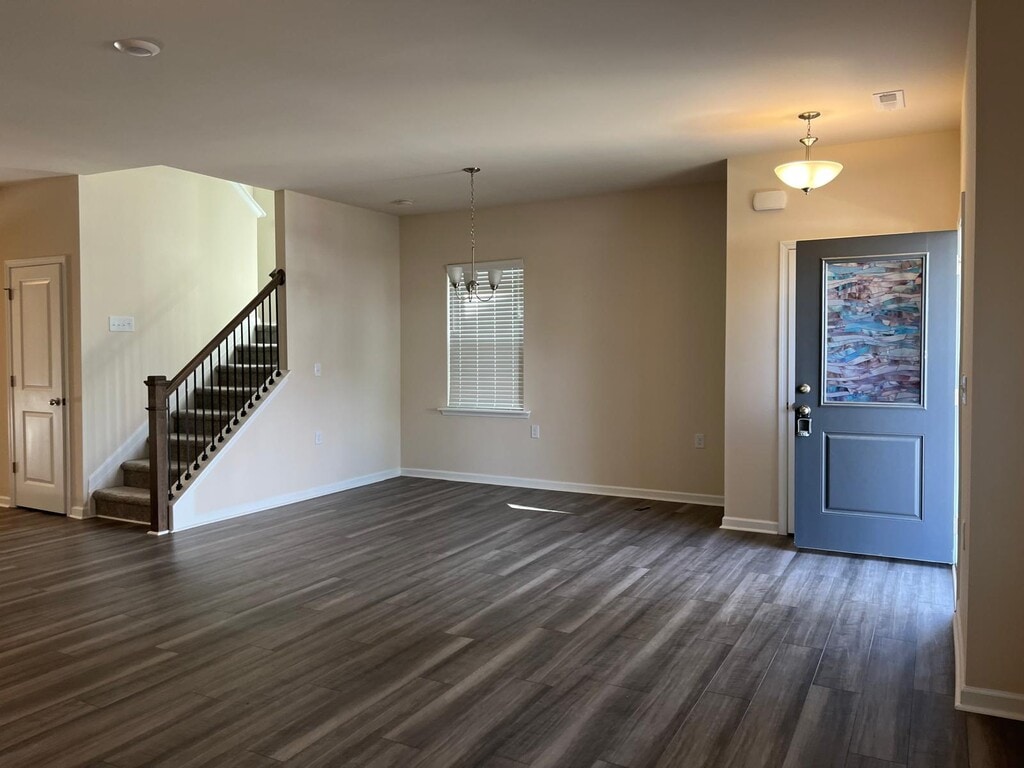 Beautiful Savanna end unit with front porch. Home features spacious great room open to dining, kitchen with great counter space and pantry. Luxuriousowners suite with tile shower and huge walk-in closet. Multipurpose loft space also! Close to Wake Countyschools, shopping, and restaurants. End-unittownhome in the Parker Station subdivision! Natural light floods the living areas! LVPflooring throughout the first floor! Open layout, great for entertaining!Large family/dining room combination! Great sized kitchen withgranite countertops, stainless steel appliances, pantry & eat-at bar! The loft area at the top ofthe beautiful staircase would make a greatoffice! Huge master bedroom with a huge walk-in closet! The private bath has a dual vanity, walk-in shower &linen closet! Two great-sized guest bedrooms! Two-car garage! W/D & French 4 door Fridge Gas stove microwave and dishwasher included! The Houseisequipped with Cat 6 wiring and ports Community dog park, walking trails & playground! Spectrum internet/basic cable included with175Channels for free.