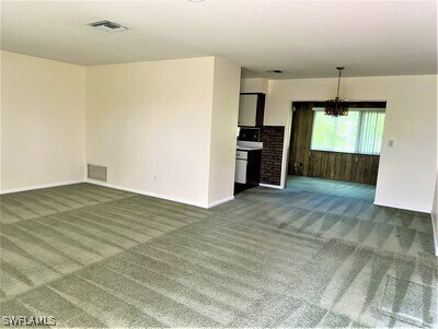 Charming 2-bedroom,2 bath home with attached 1 car garage and large screened in lanai area. The home features extra storage inside and out. Large yard for gatherings or outdoor activities. The home has a "Florida-Room" or a den (however you'd like to use it) of sorts off the dining area and lanai. Great location for dining and grocery. This home is a mere 15-20 minutes from 75 and SWFL International Airport.